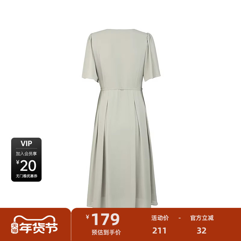 V领连衣裙 压褶收腰 雪纺质地