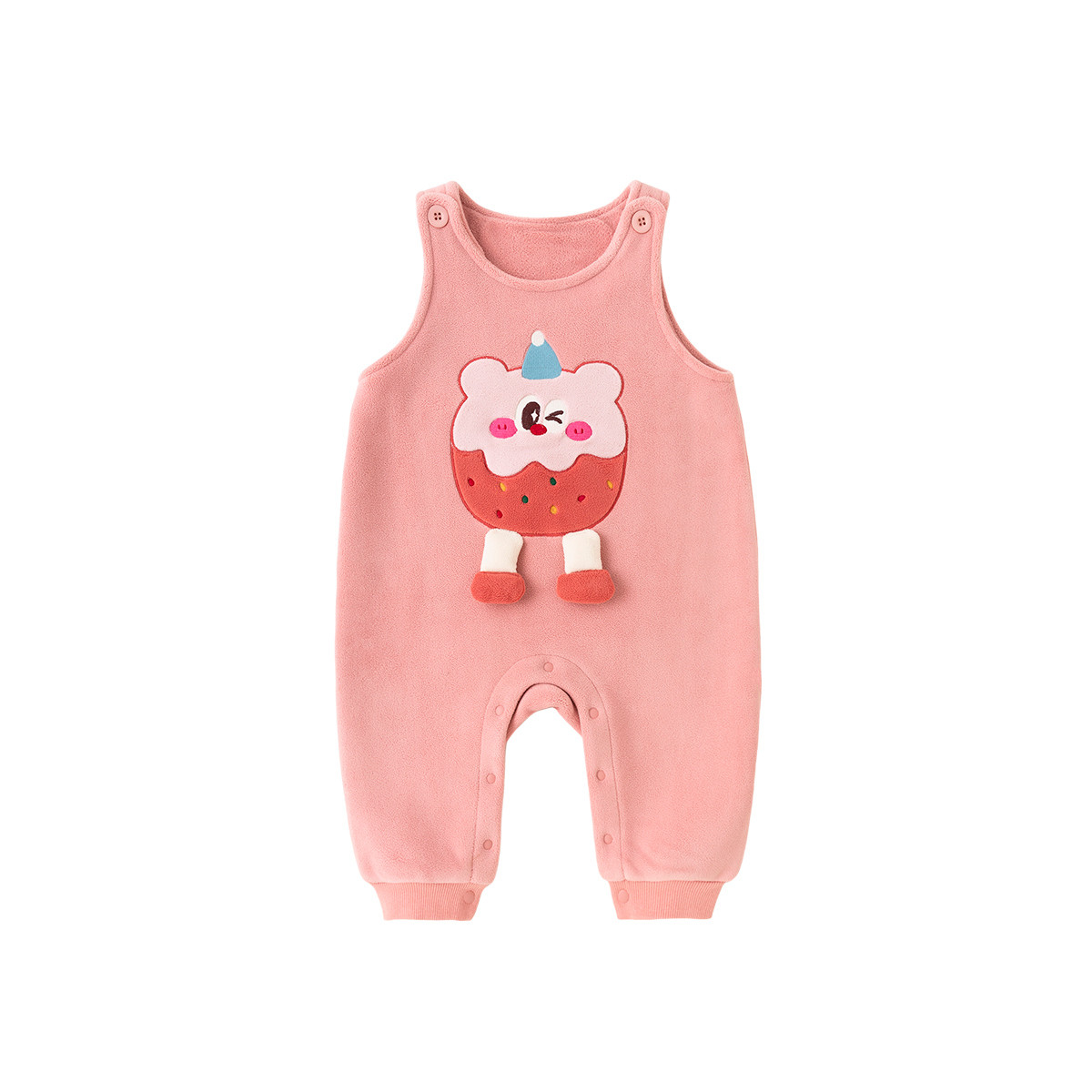 小猪大卫新生儿秋冬夹棉连体衣男女宝宝卡通印花中开保暖爬服