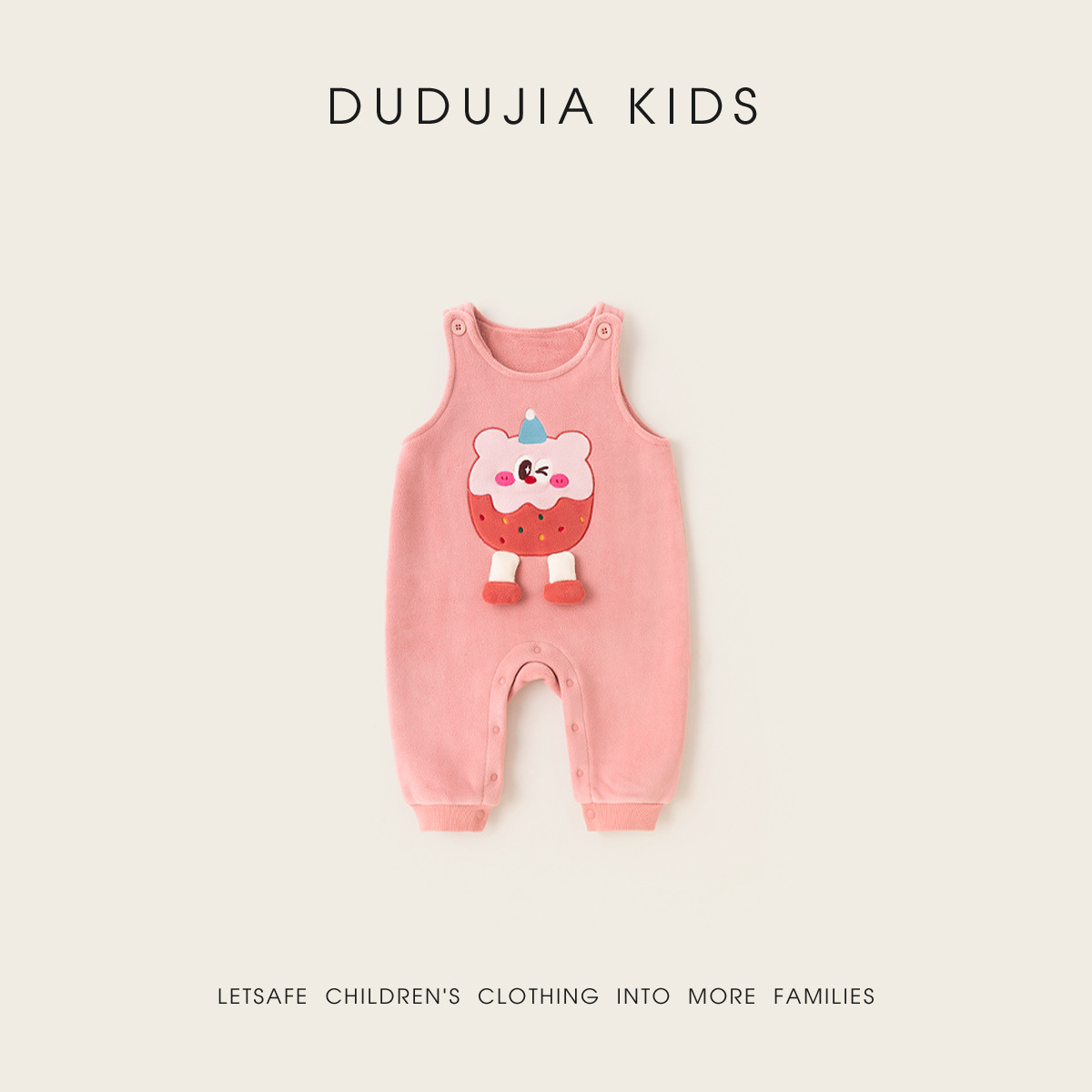 DUDUJIA男童背带裤秋冬款宝宝裤子新款女宝长裤加绒男宝裤装冬季3