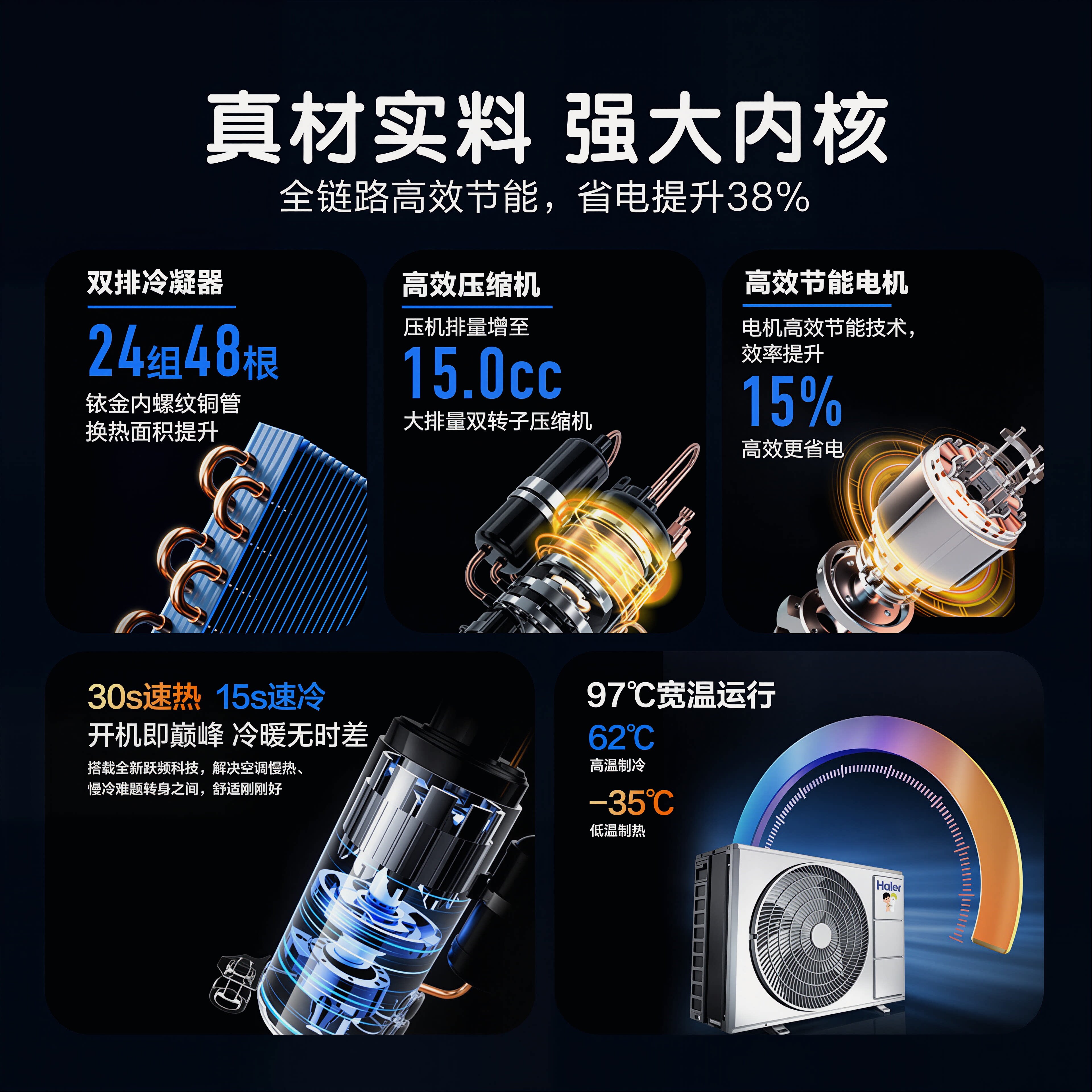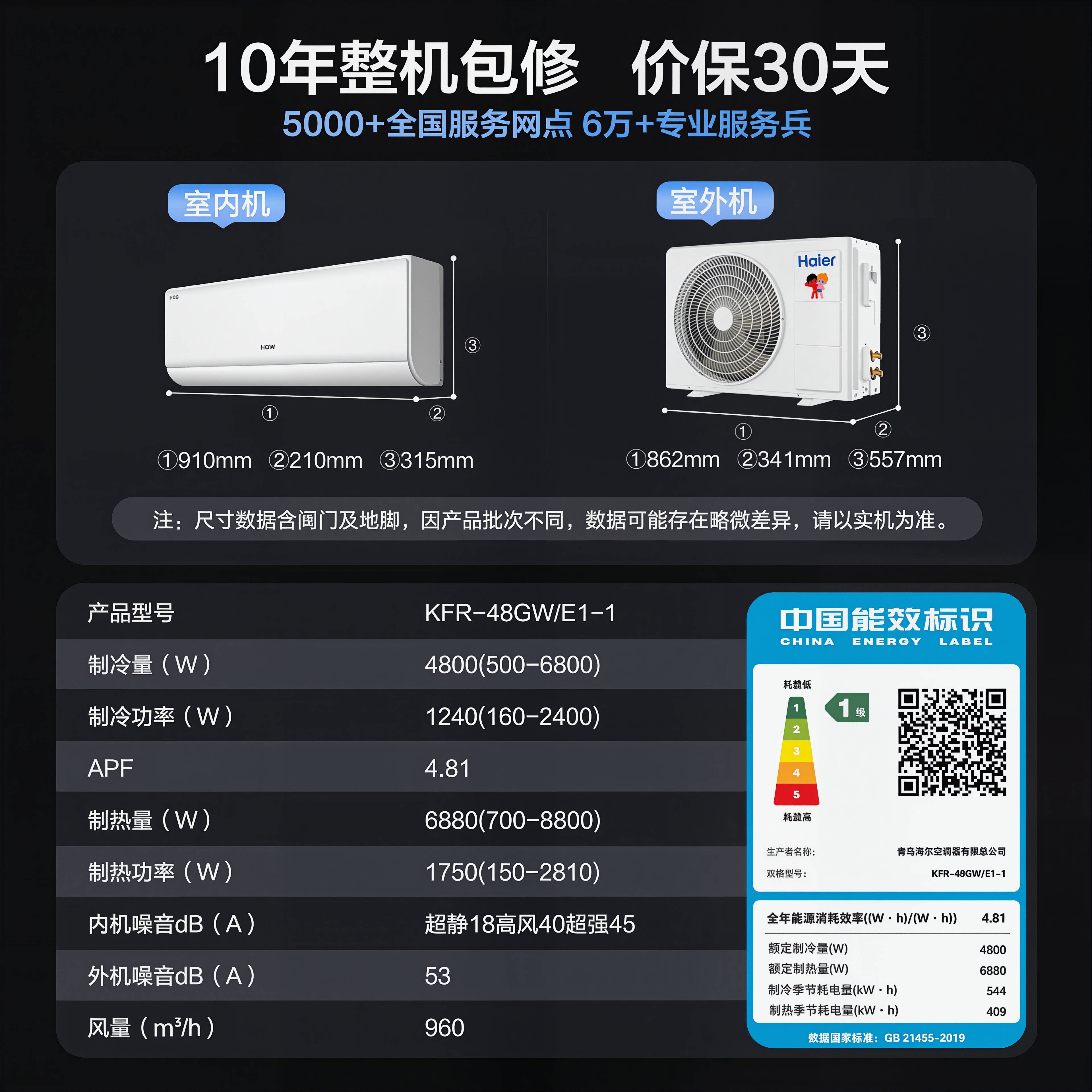大挂机】海尔空调2匹3匹家用客厅一级能效变频卧室冷暖省电旗舰店