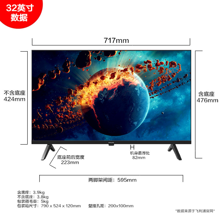 飞利浦32英寸全面屏液晶电视机智能网络WiFi平板TV 32PHF6309S/T3