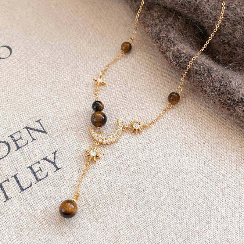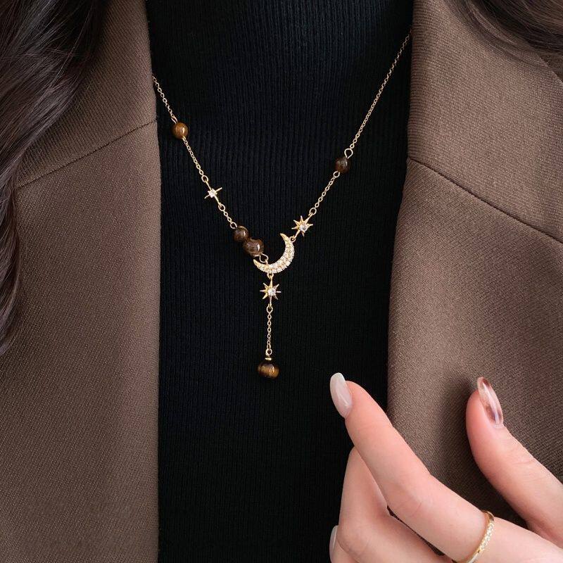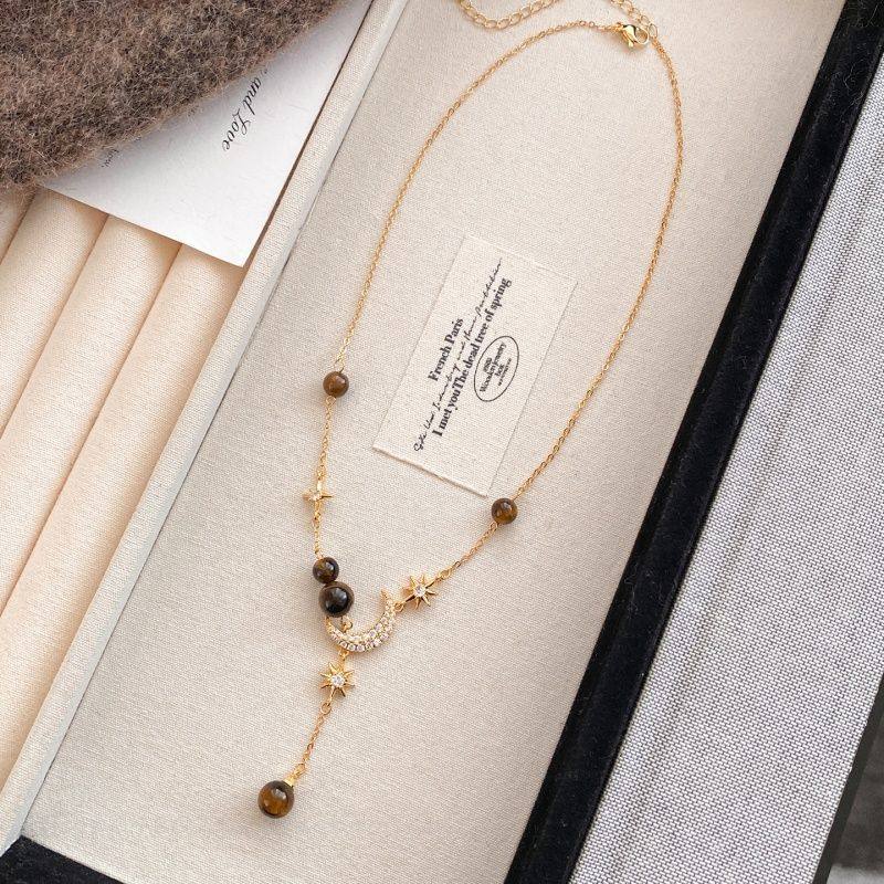 美拉德虎眼石星月项链女2025秋冬新款爆款颈链复古百搭毛衣链配饰