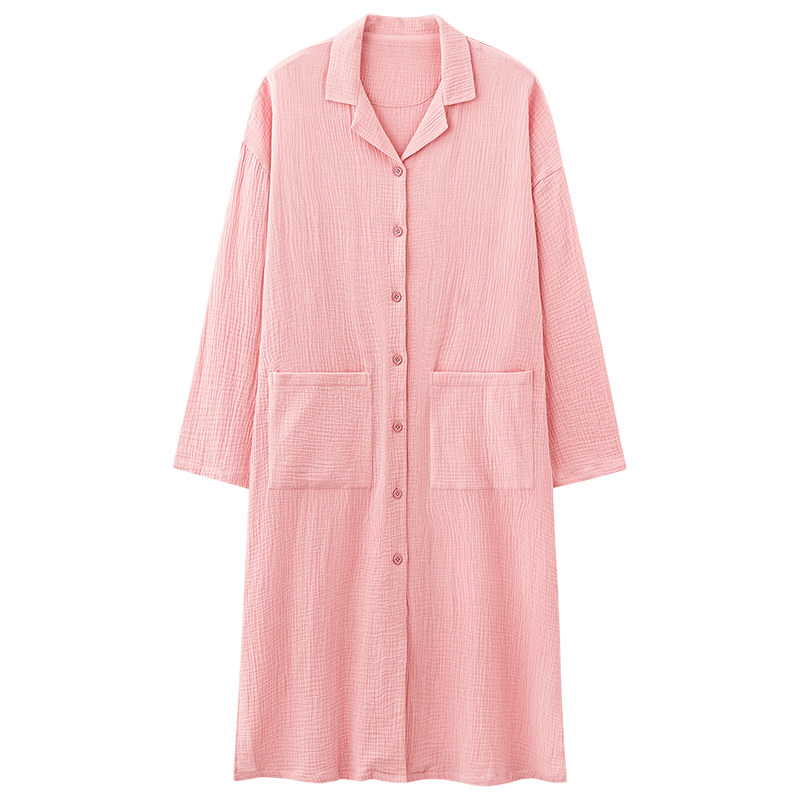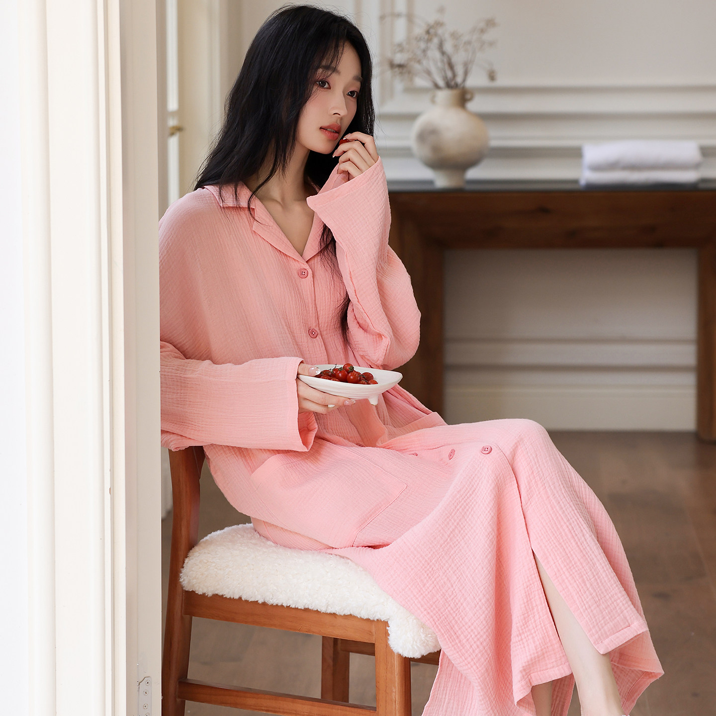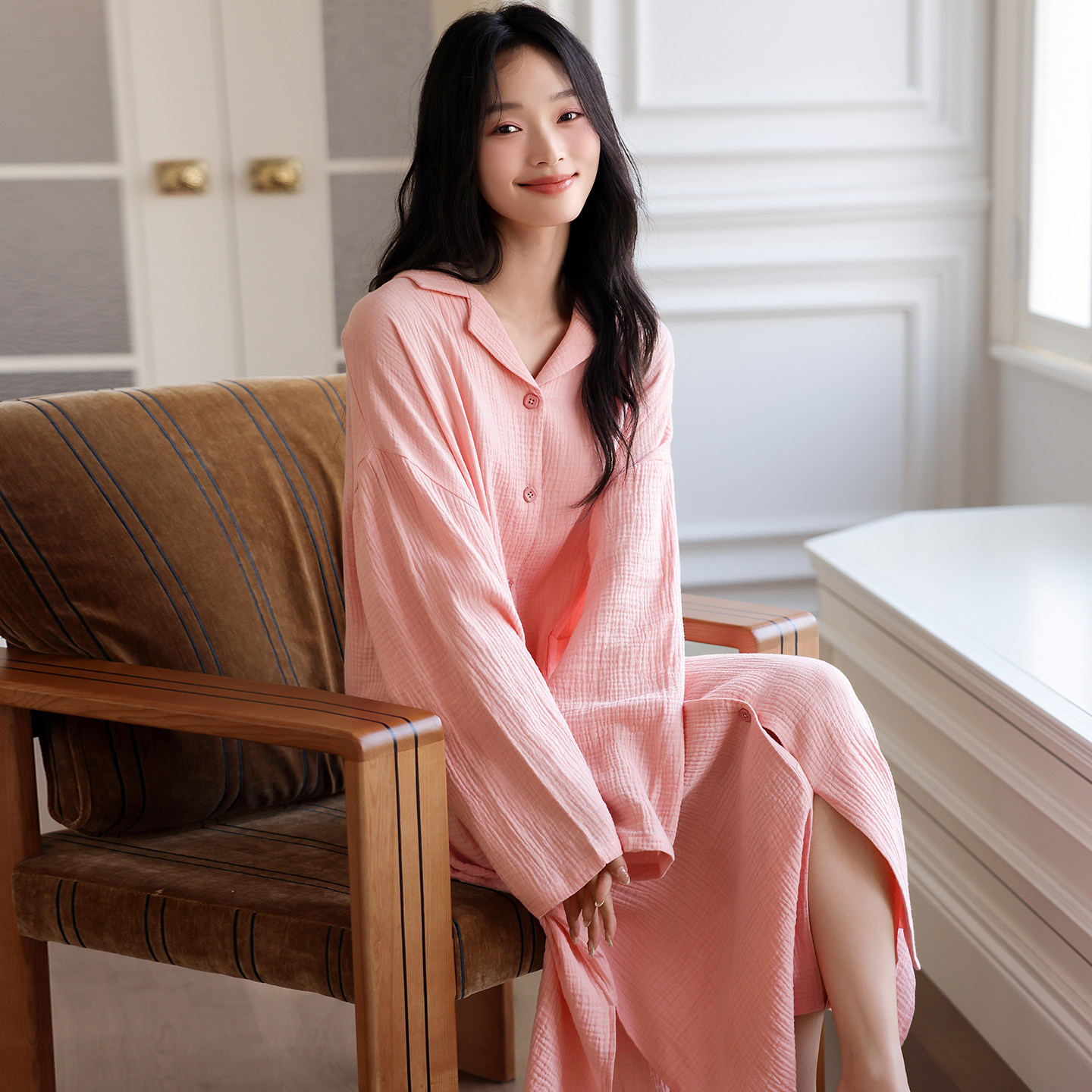 棉绸纱布睡衣女长袖开衫睡裙家居服中长款 多规格