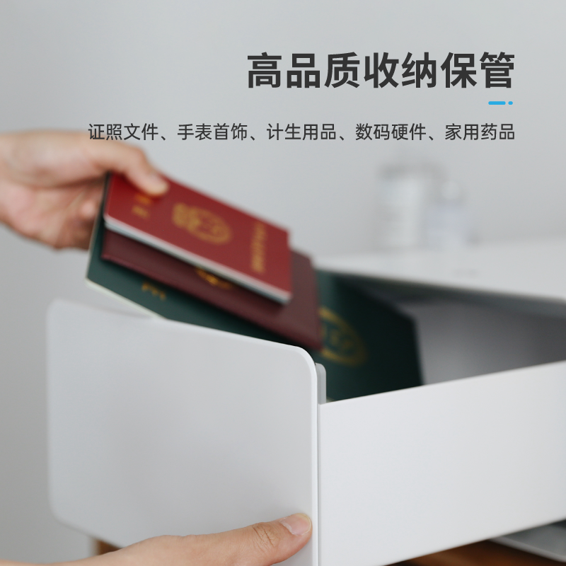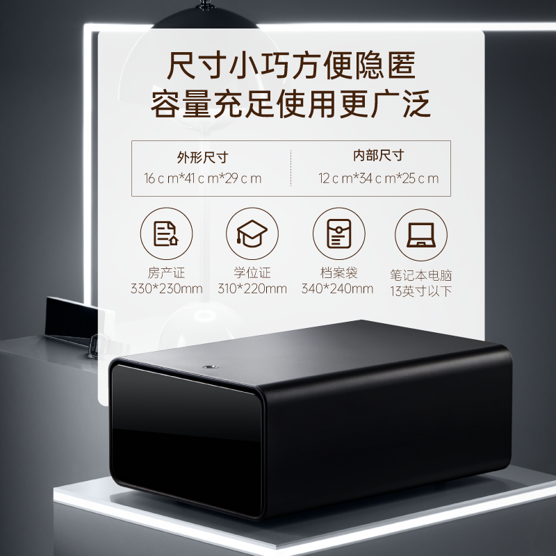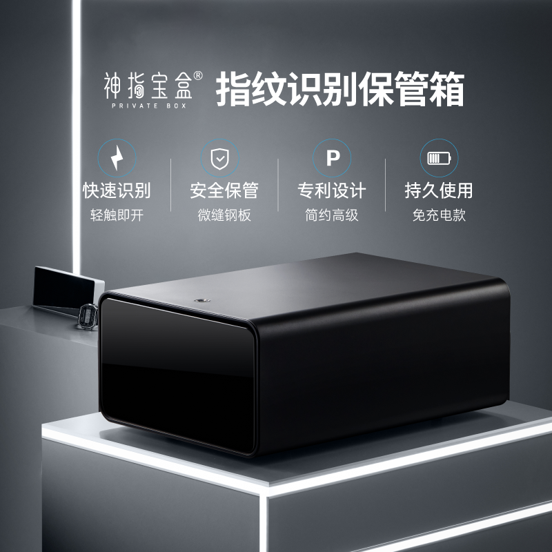 神指宝盒指纹保险柜家用小型迷你入柜抽屉式桌面首饰收纳盒带锁办公室密码指纹文件证件储物柜财务保险箱