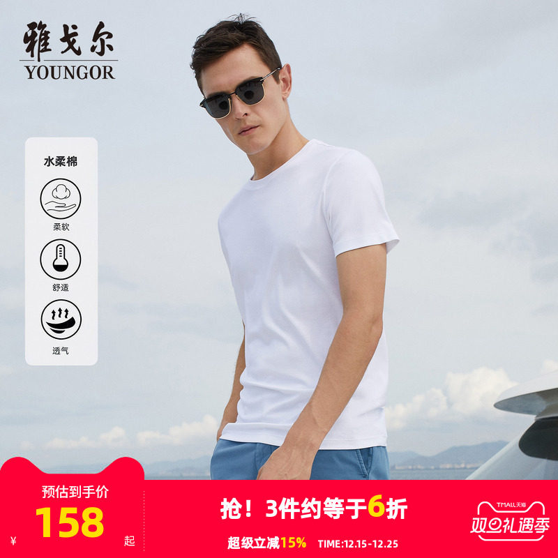 雅戈尔夏季男士短袖T恤休闲宽松圆领水柔棉打底新疆棉T恤9614