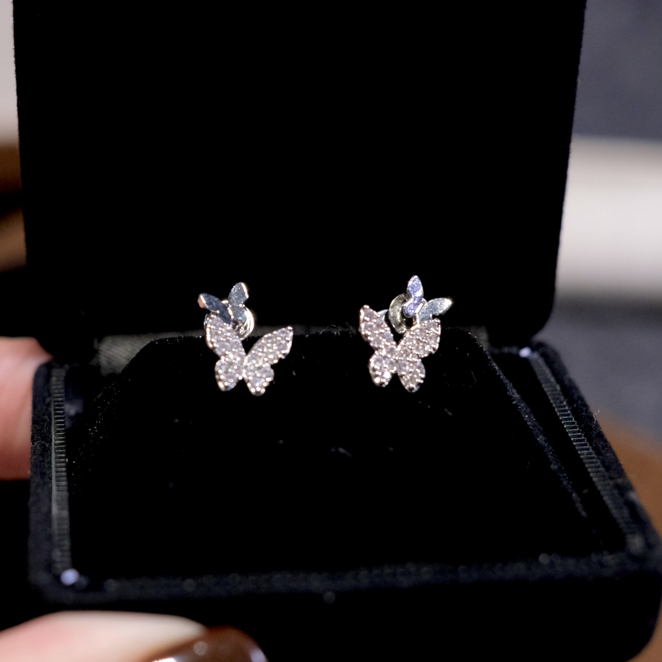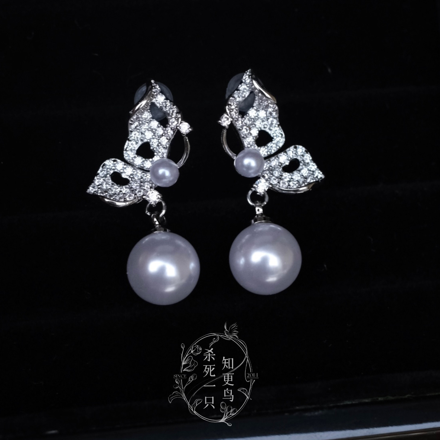 蝴蝶珍珠套装耳钉女轻奢小众高级感耳骨钉耳饰品2025新款爆款耳环