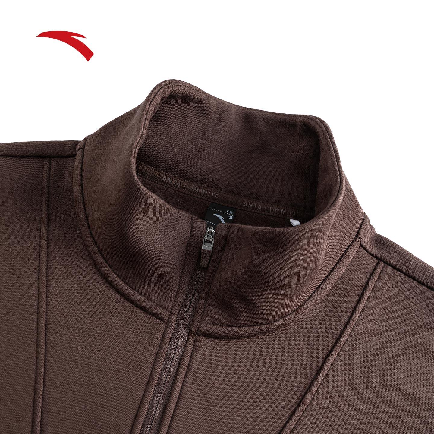 安踏加绒卫衣男士冬季新款半拉链宽松休闲长袖加厚上衣152547719N