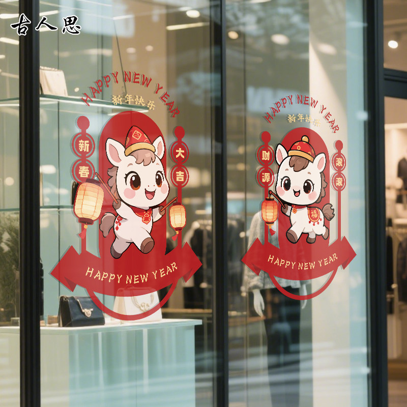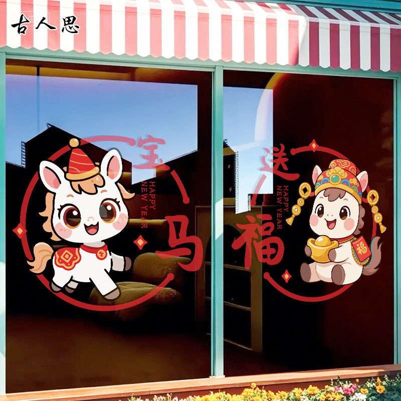 2026新年窗花马年装饰新款玻璃门贴纸静电橱窗贴春节氛围布置贴画