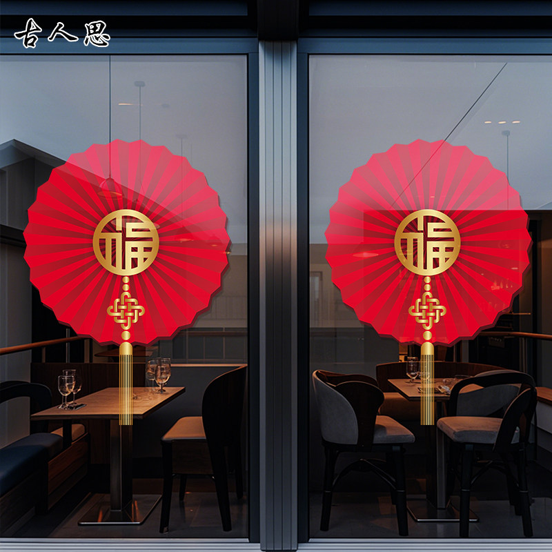 新年春节元旦福字橱窗玻璃门折扇装饰静电贴纸周年喜庆无胶贴窗花