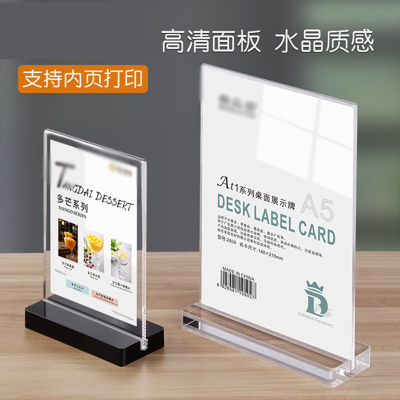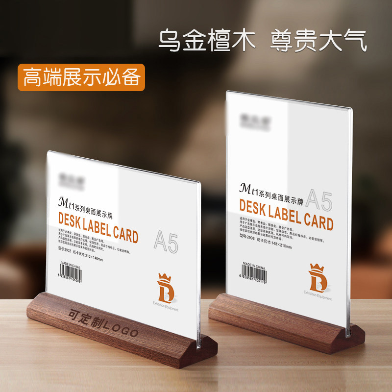 柏兰帝-透明亚克力实木台卡架 T型水晶A4台牌桌牌台签 美容美甲价格标价牌 POP广告桌面展示牌立牌酒水牌餐牌