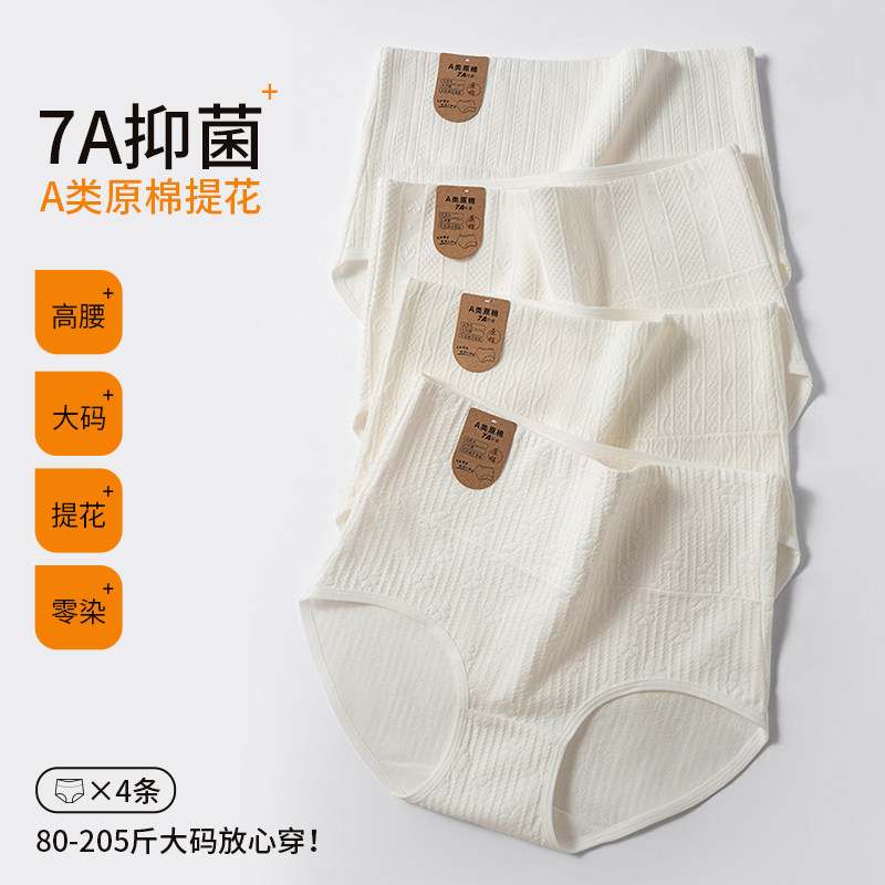 内裤女士纯棉高腰收腹7A级抗菌全棉裆大码原棉三角裤2024新款短裤
