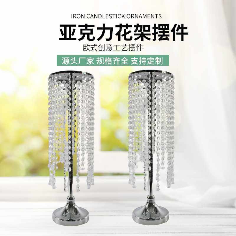 亚克力婚礼花架欧式珠帘花器 婚庆道具路引餐桌插花装饰花瓶摆件