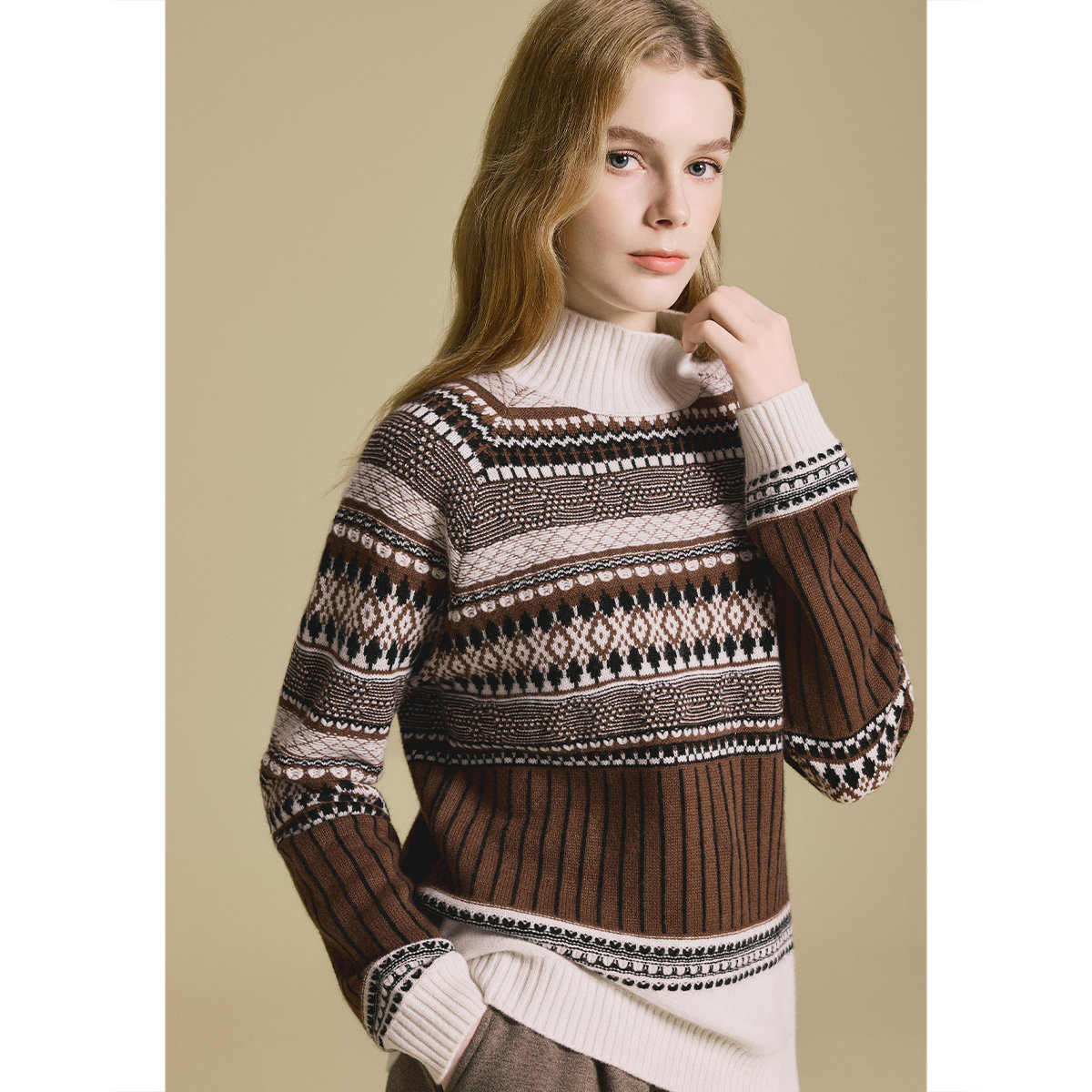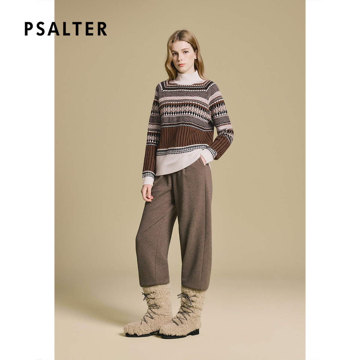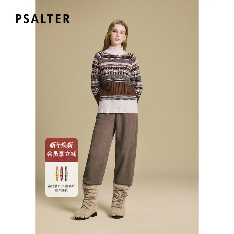 PSALTER诗篇菱形图案半高立领休闲百搭羊绒衫2025冬季新款