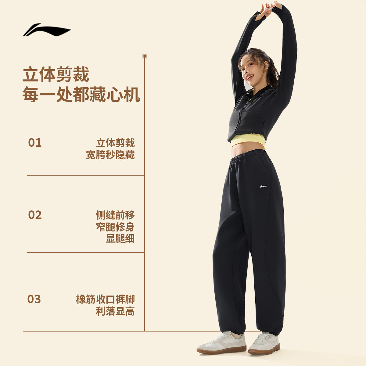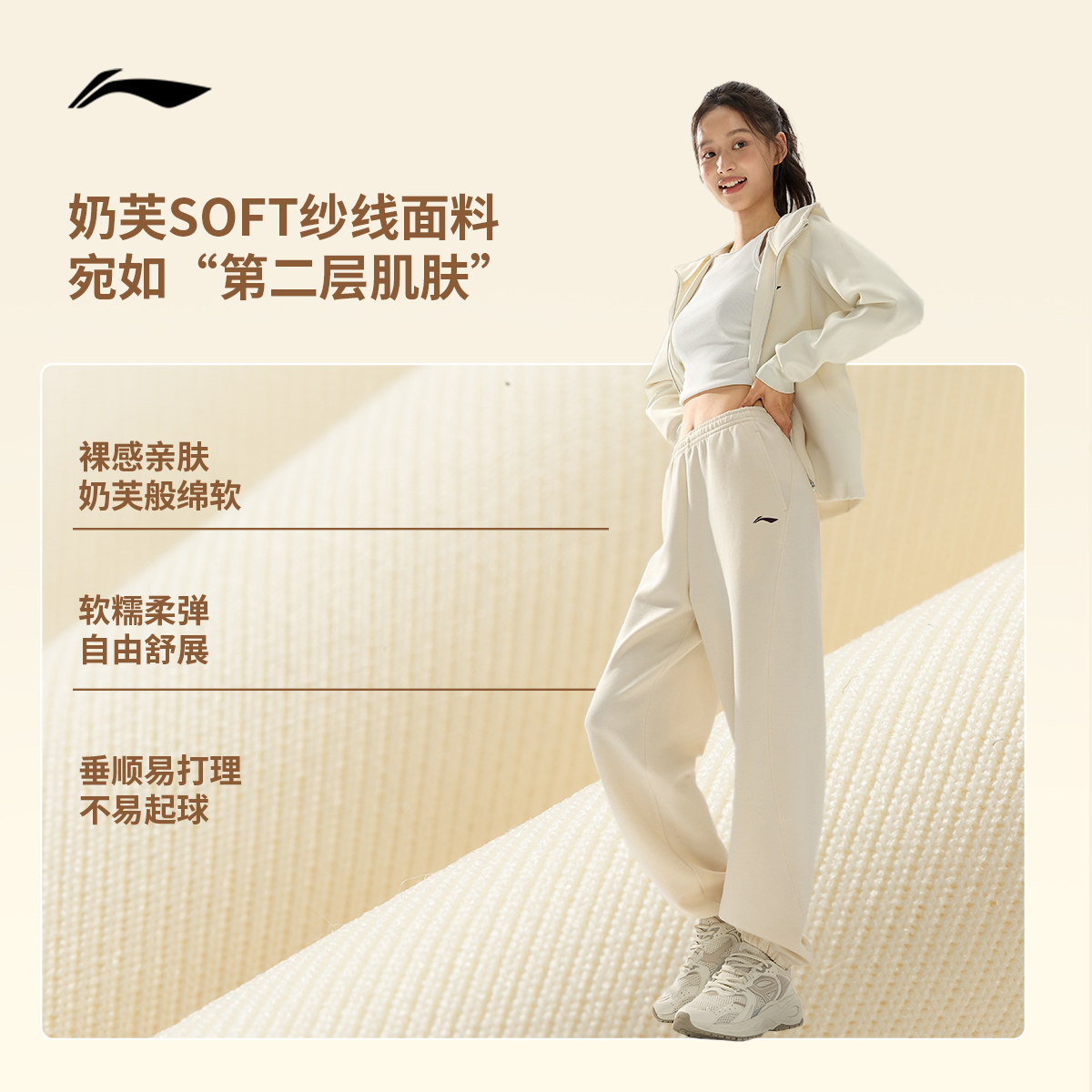 李宁奶芙裤丨卫裤柔弹健身长裤女休闲黑色裤子束脚针织运动裤女款