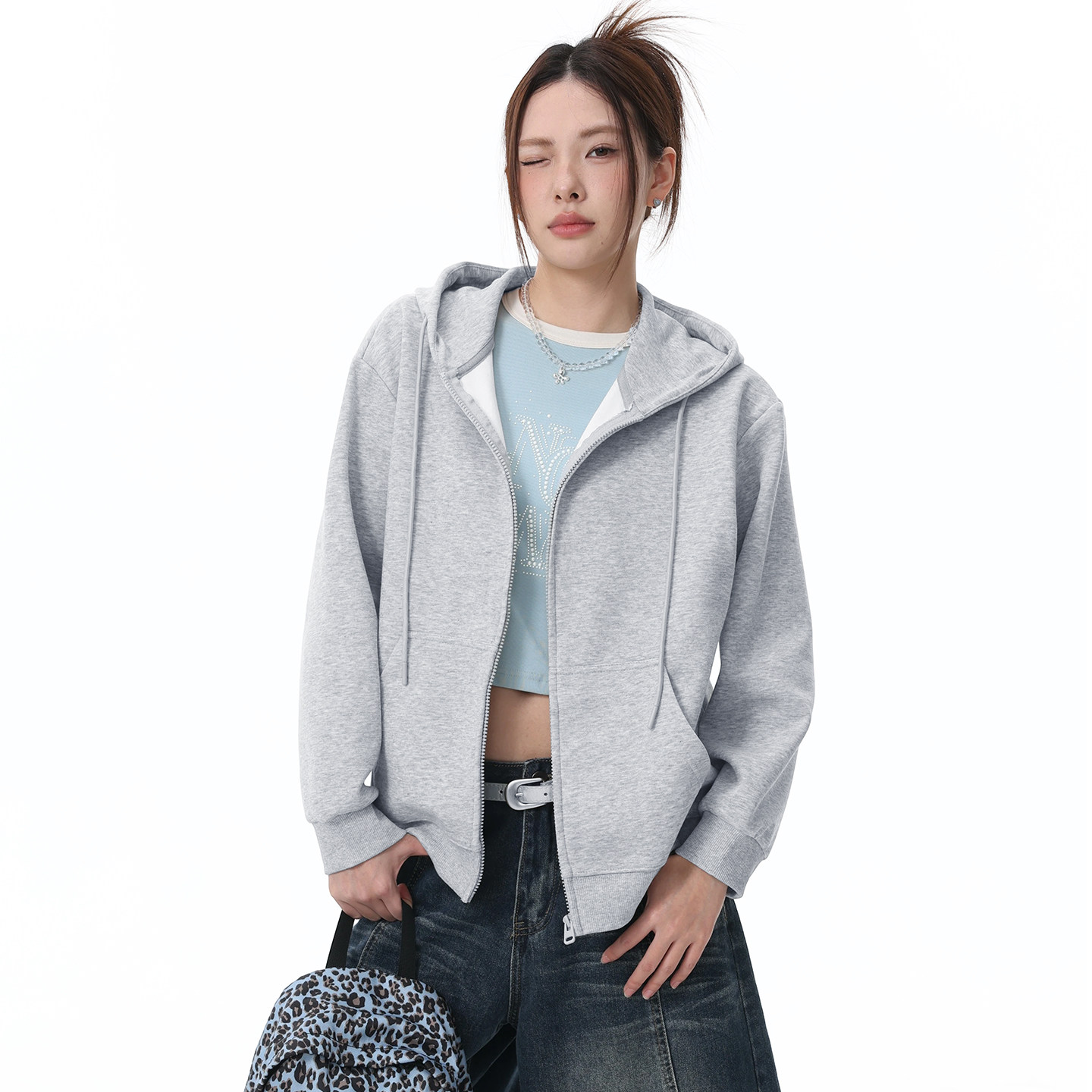 三福卫衣开衫2025新款秋季连帽情侣款外套宽松慵懒风灰色上衣女装