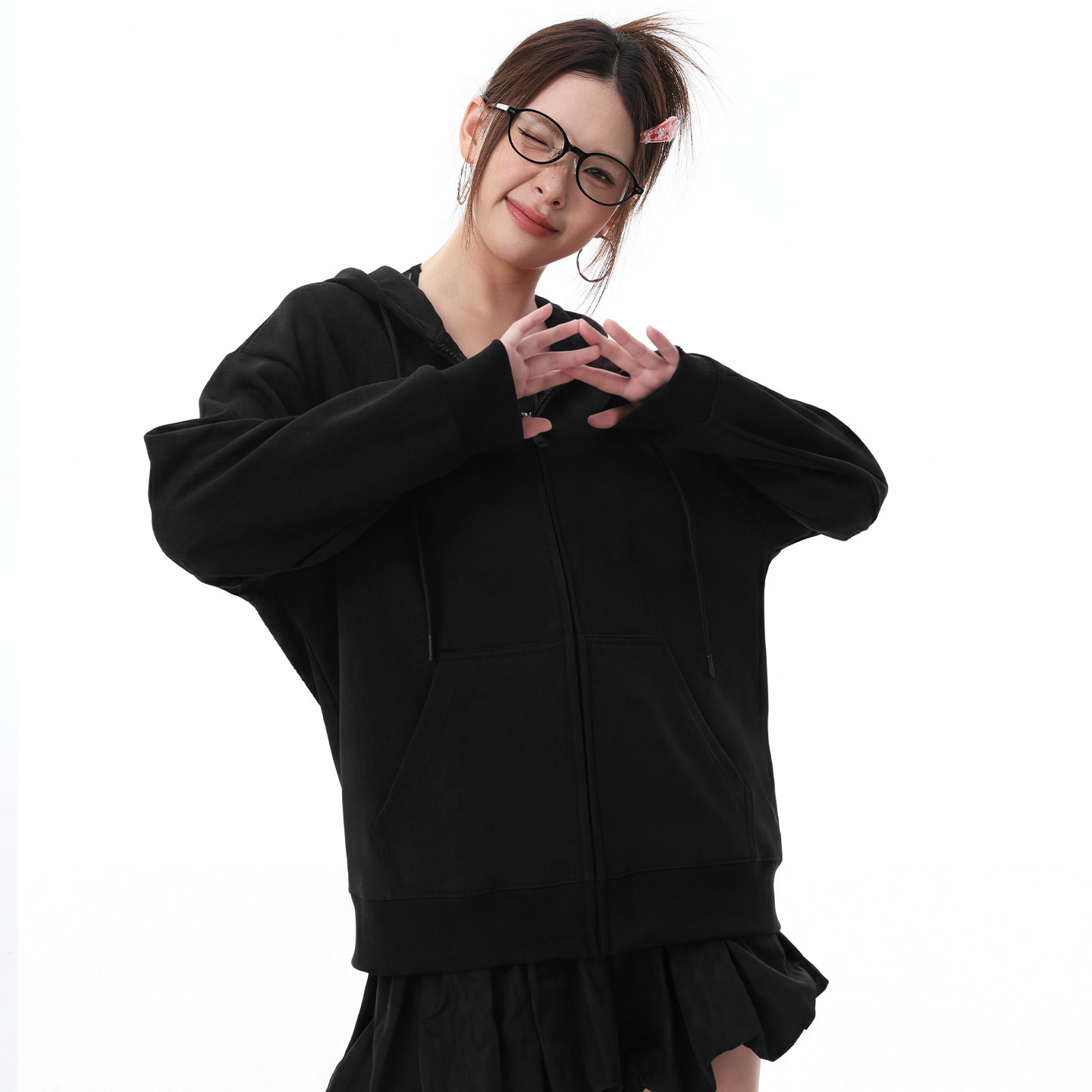 胖mm显瘦连帽卫衣木子理想大码女装秋季拉链休闲百搭外套200斤