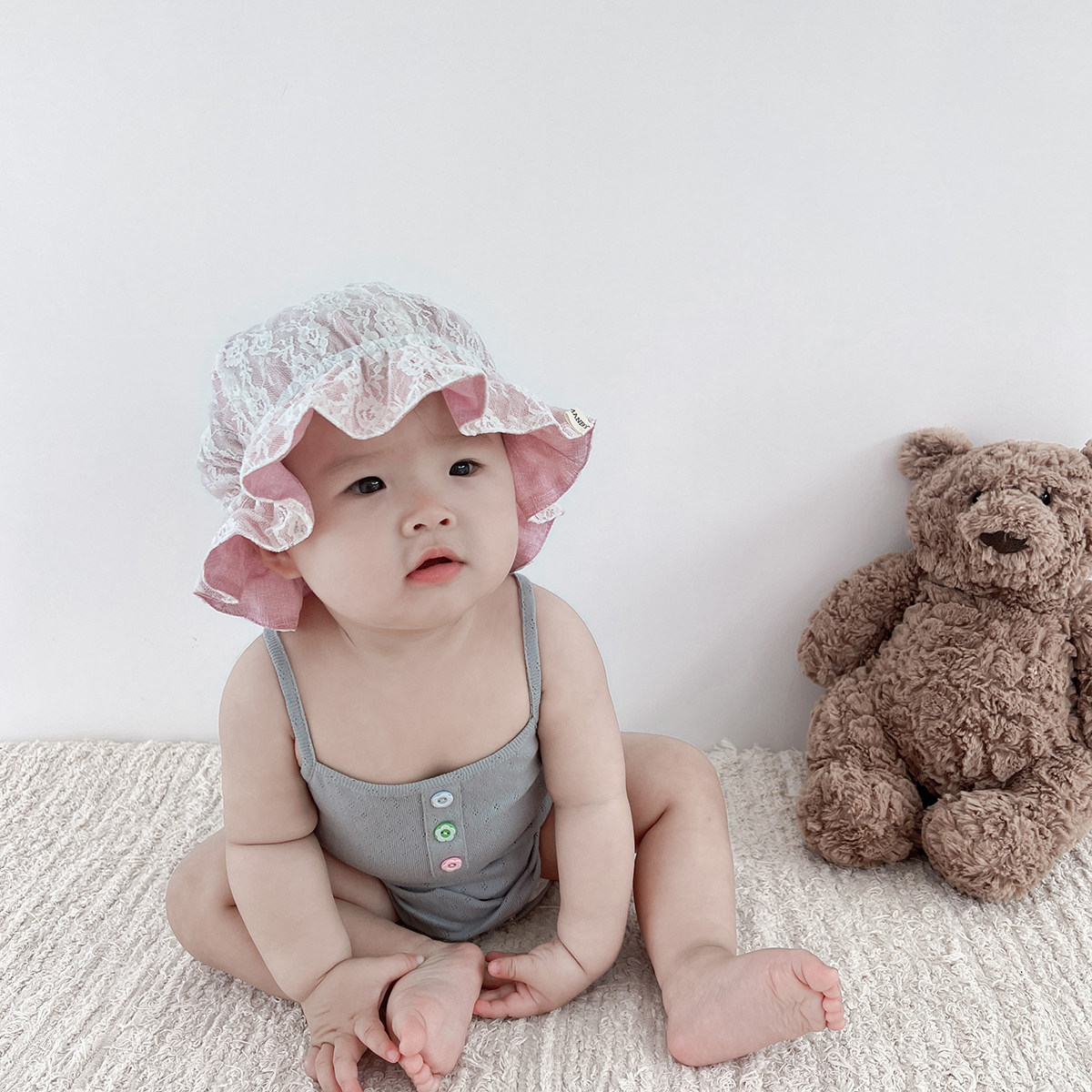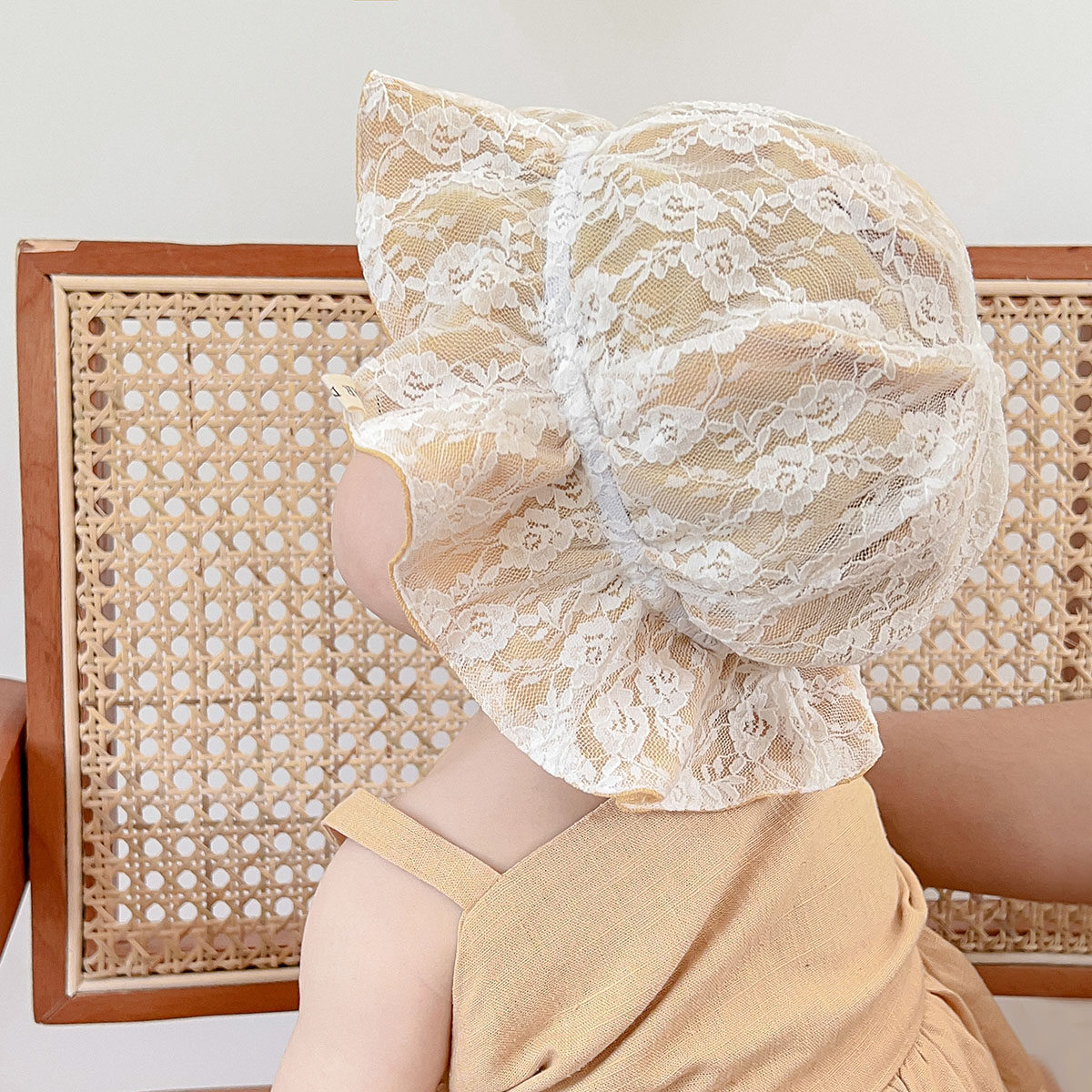婴儿帽子蕾丝棉麻双面防晒防紫外线薄款女宝宝儿童渔夫帽盆帽春夏