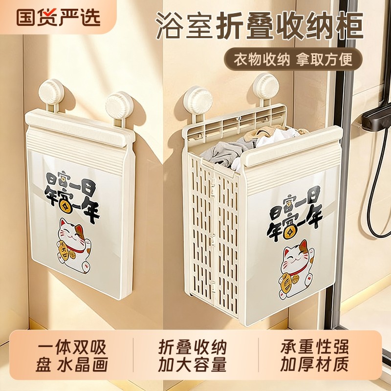浴室脏衣篮折叠收纳框洗澡放衣服神器壁挂式吸盘免打孔脏衣篓挂墙