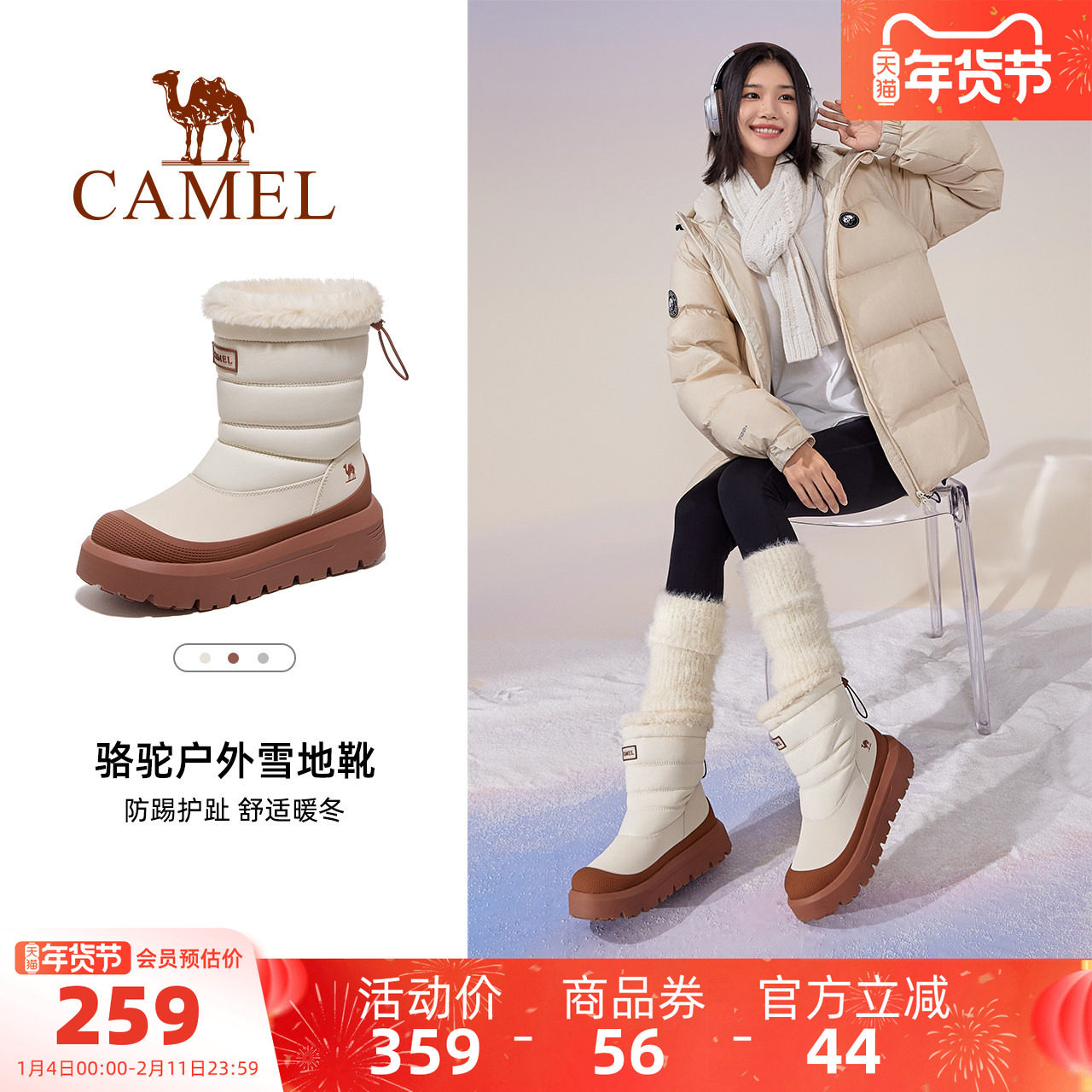 骆驼雪芙雪地靴女鞋2025冬季新款户外加绒保暖棉鞋女款厚底短靴子