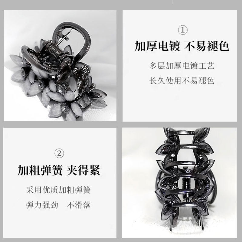 2025年爆款水钻金属琉璃花小抓夹高级感后脑勺半扎鲨鱼夹发卡弹簧