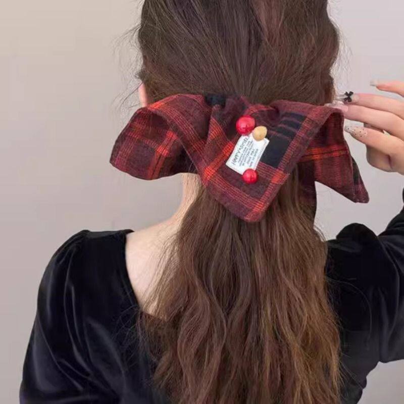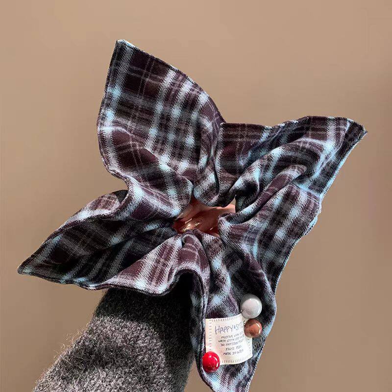 韩版发饰ins风头饰秋冬新款饰品头绳方巾发绳可爱格子大肠发圈毛