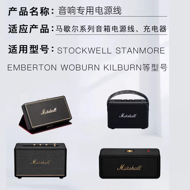 适用Marshall马歇尔音箱响电源线ACTON/STOCKWELL/EMBERTON/WOBURN/KILBURN Stanmore 2代3代充电源适配器线