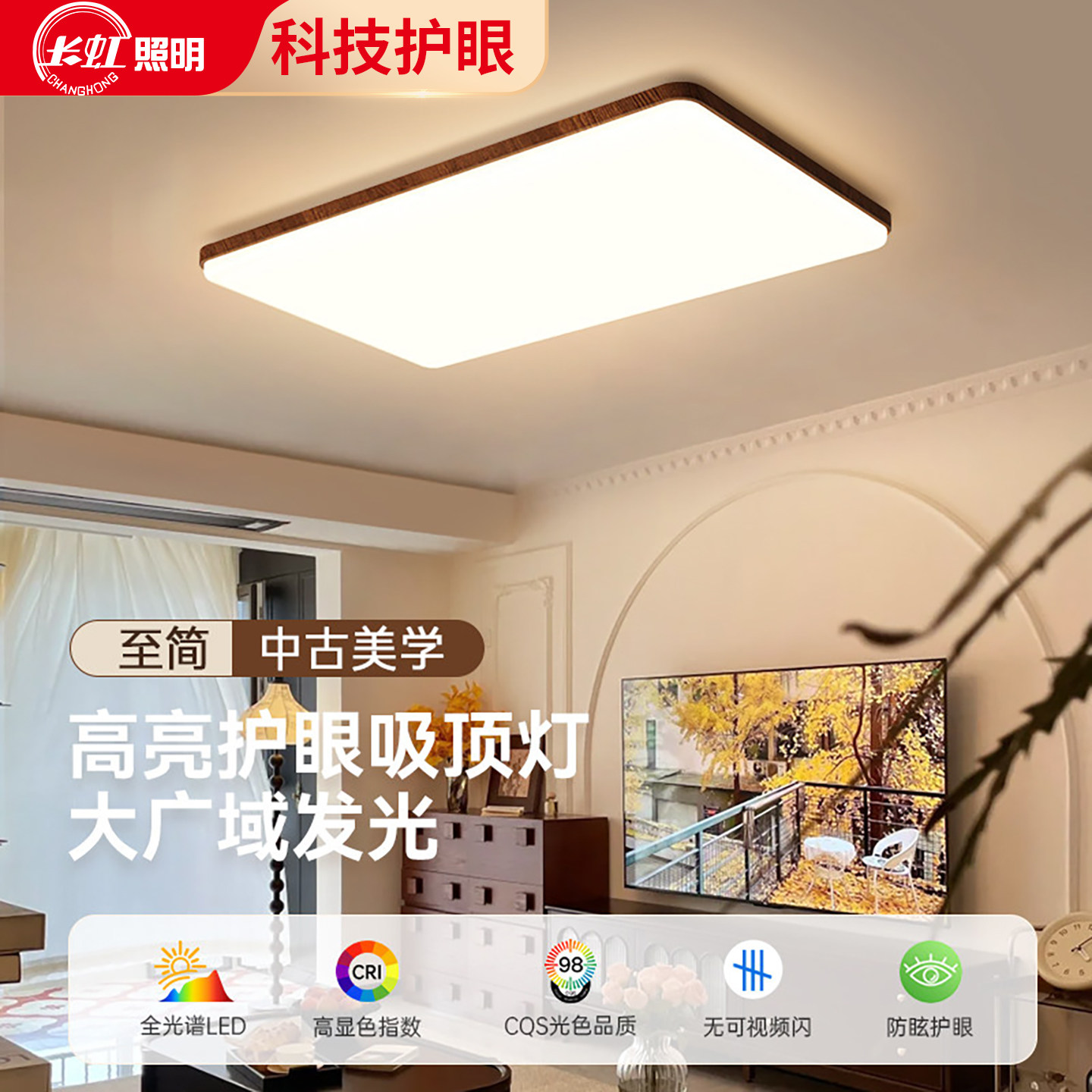 长虹客厅主灯2026新款超薄中古风吸顶灯简约现代大气灯具全屋套餐