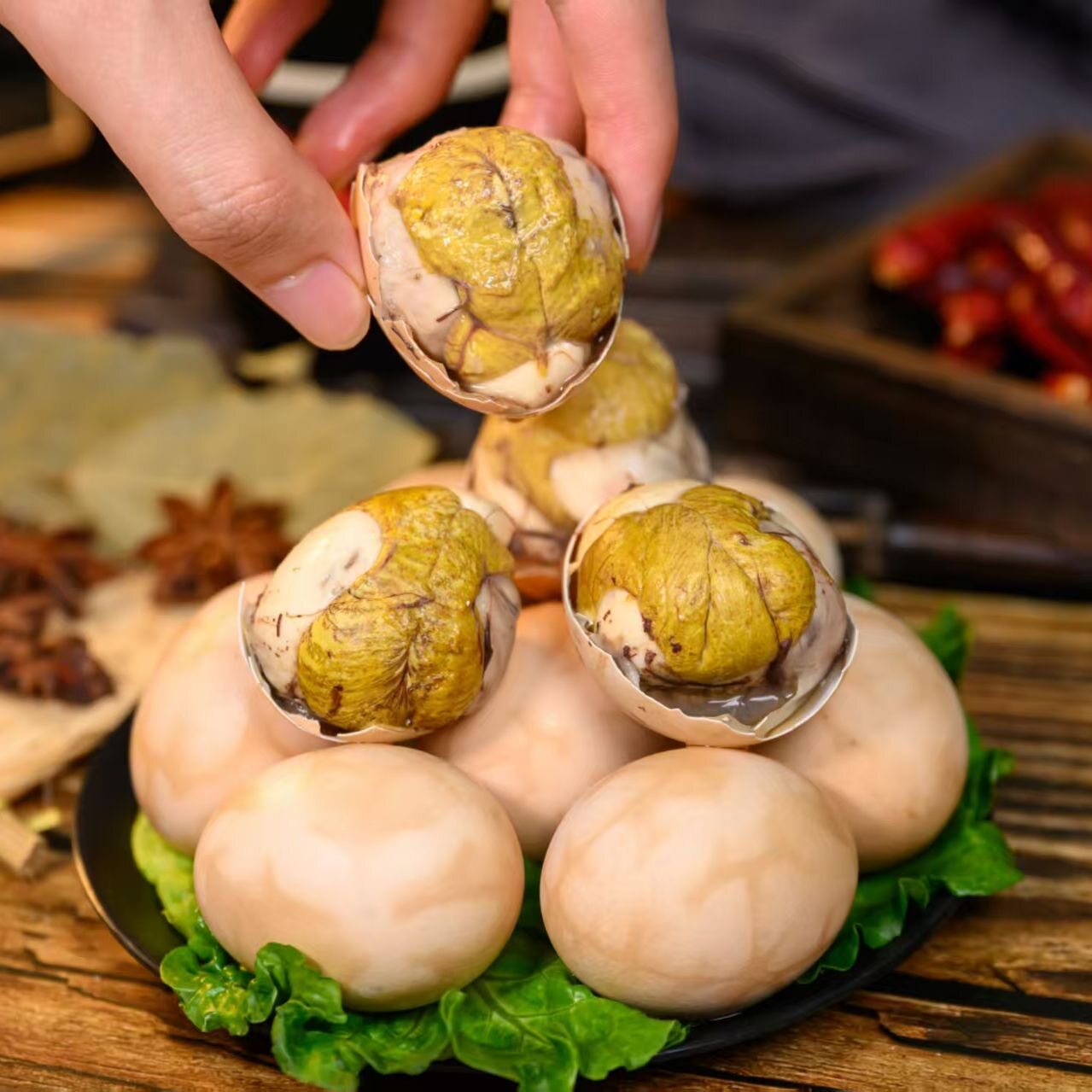 活珠子香辣毛鸡蛋五香味钢化蛋批发开袋即食熟胚蛋13天新鲜原味