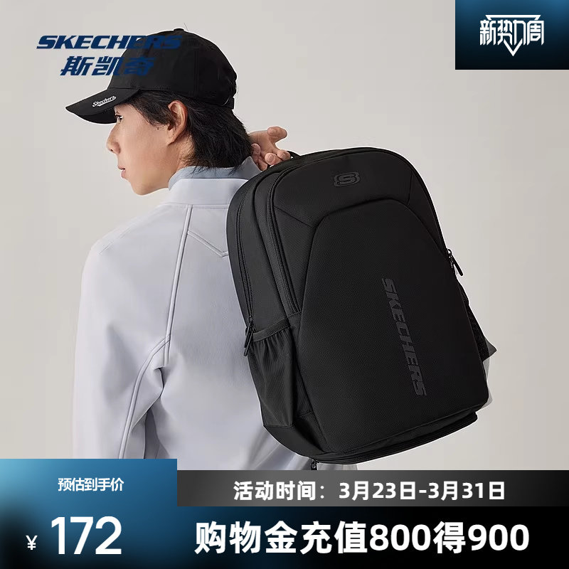 斯凯奇双肩包大容量简约旅行背包开学季百搭大学生运动休闲书包