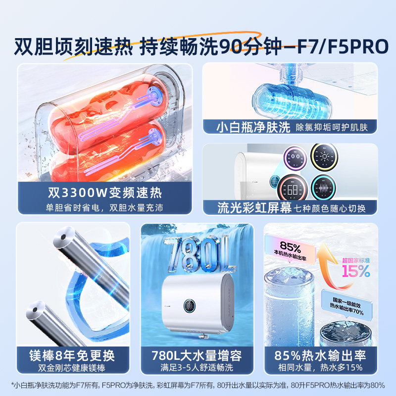 【焕新补贴】海尔出品统帅电热水器60L家用一级扁桶小音浪F7