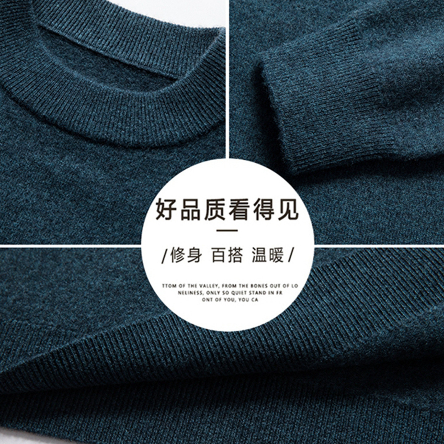 猫人100%纯羊毛衫秋冬新款纯色百搭毛衣加厚保暖圆领高端针织衫