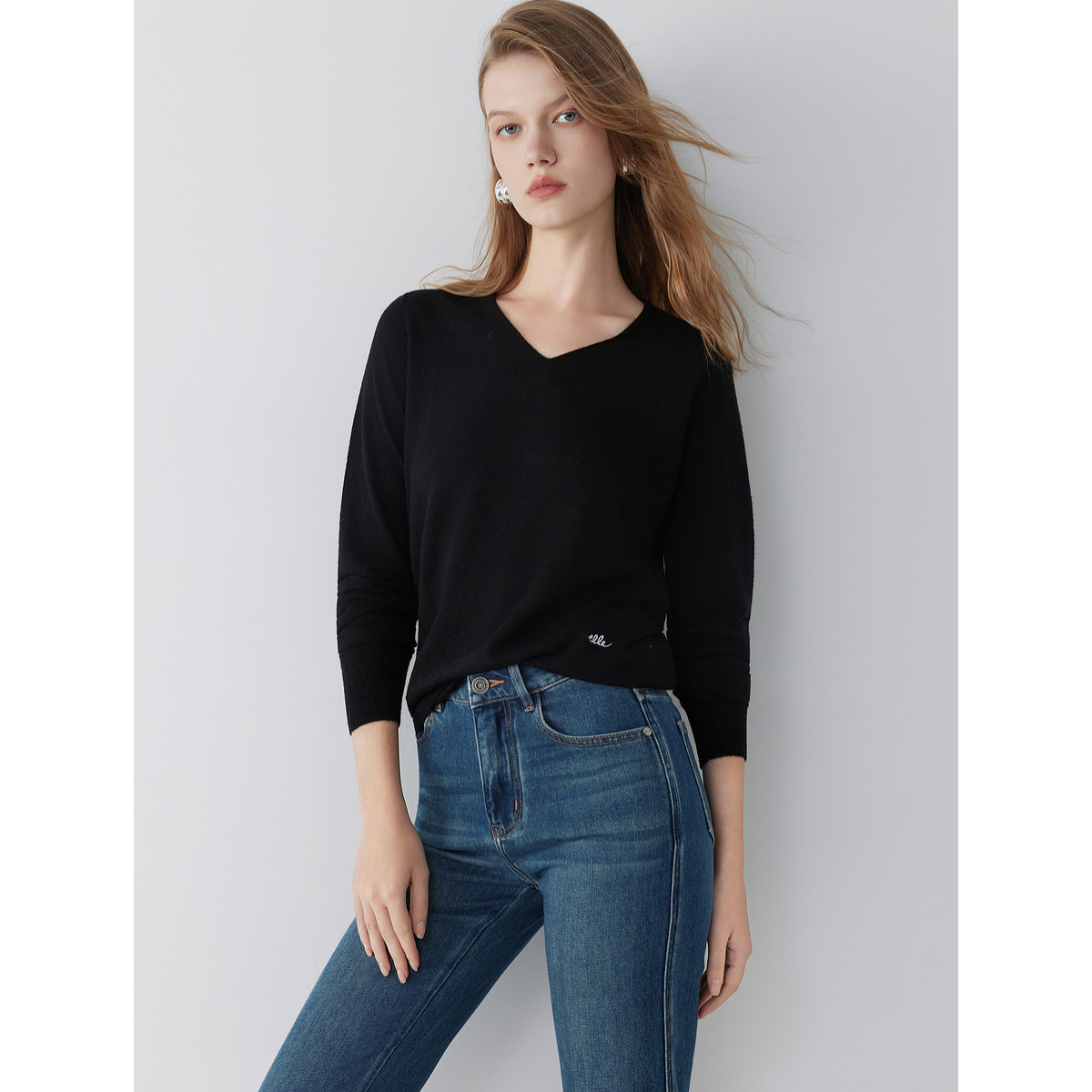 【100%绵羊毛】ELLE无缝一体高级感毛针织衫女2025秋新款纯色毛衣