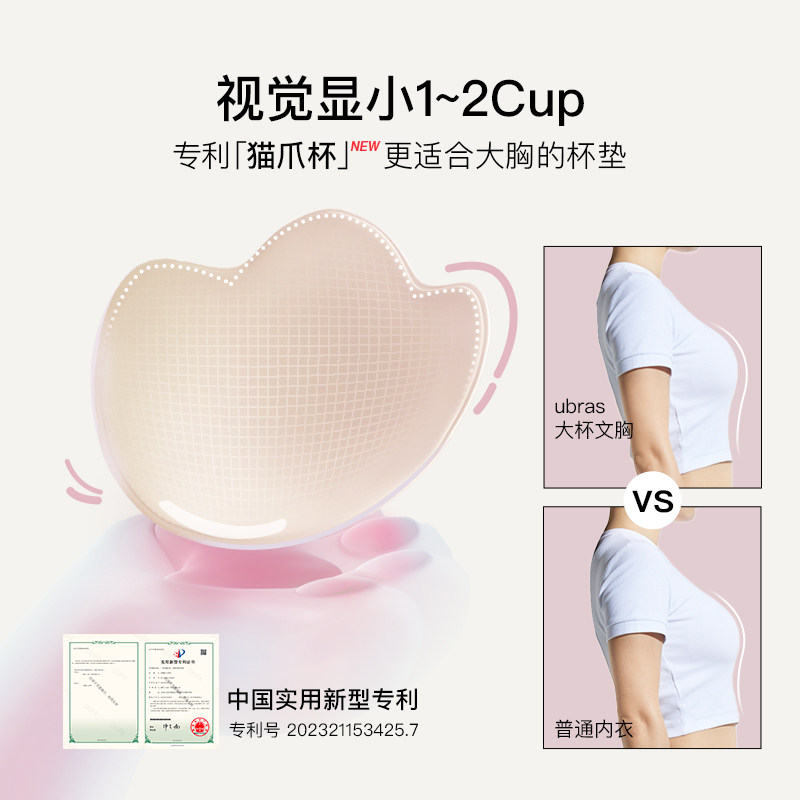 ubras透气猫爪杯大胸显小内衣防下垂收副乳聚拢无痕文胸罩女