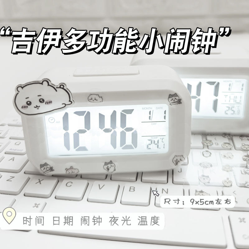 闹钟吉伊卡哇2026迷你夜光床头时钟可爱学生宿舍台钟充电帕恰狗