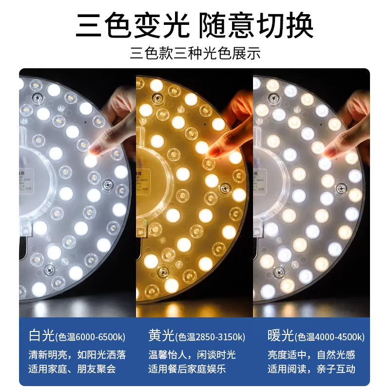 【全网】LED磁吸替换灯芯灯盘三色白光超亮改造模组安装简单