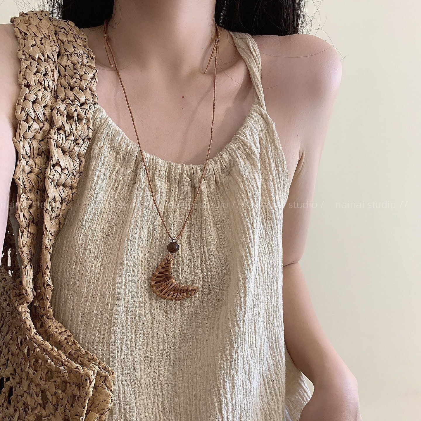编织项链~波西米亚风爱心月亮长款毛衣卫衣链挂脖民族新中式配饰