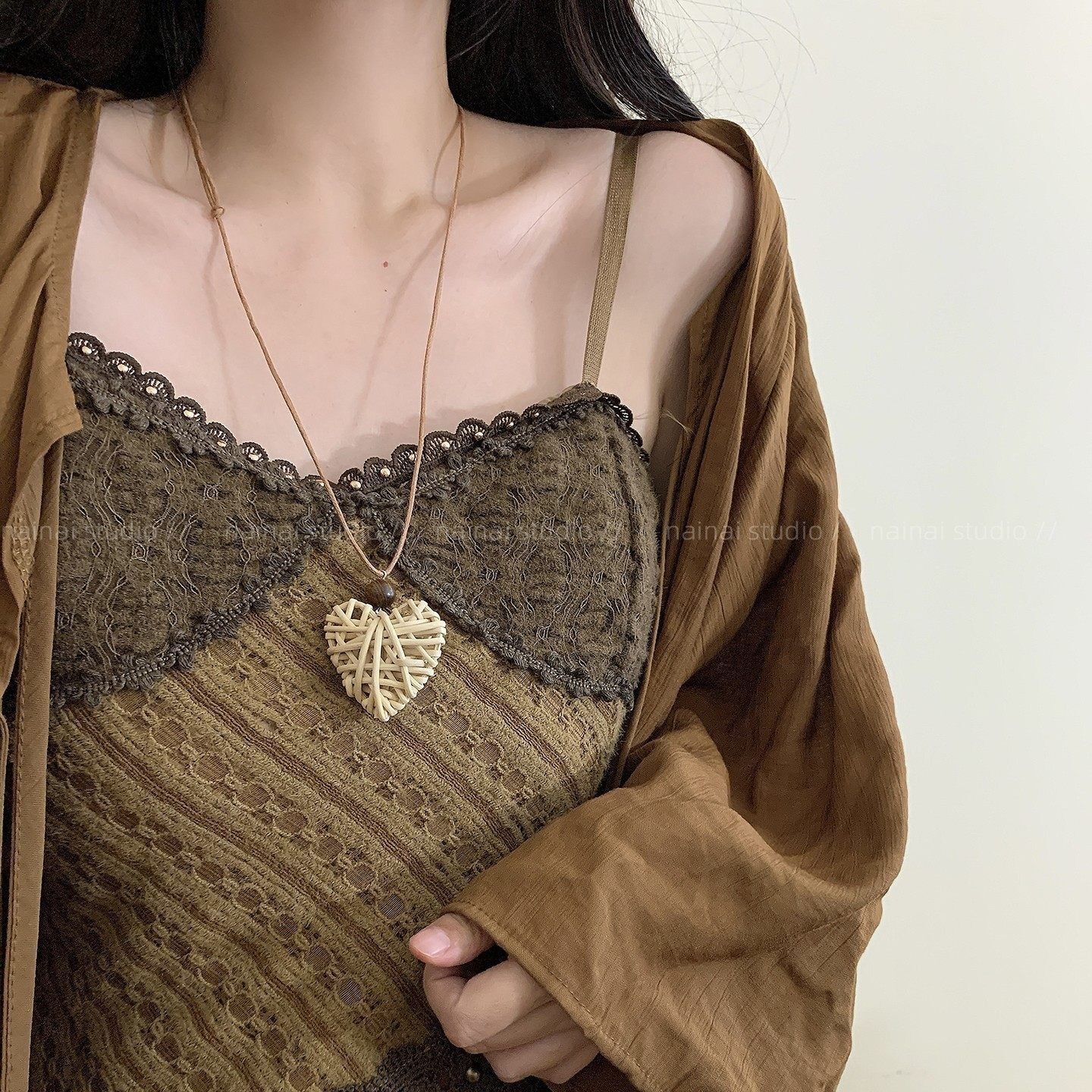美拉德波西米亚叠戴毛衣项链女棕色复古穿搭choker锁骨链高级配饰