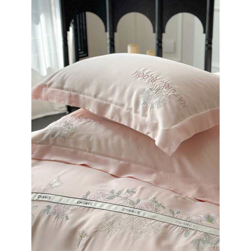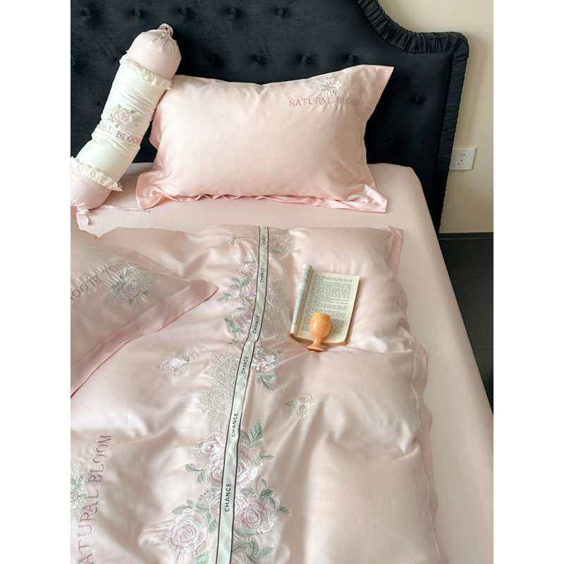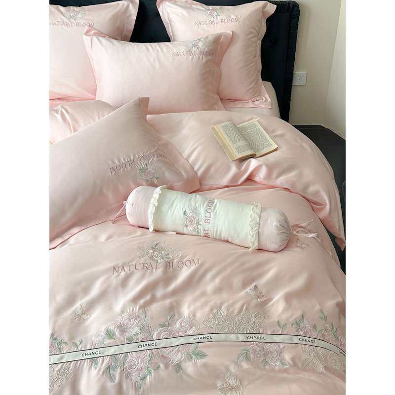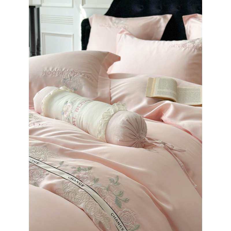 夏季A类天丝四件套高级新款花卉刺绣被套凉感裸睡冰丝滑床单床品4