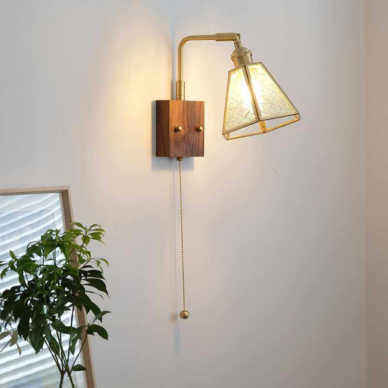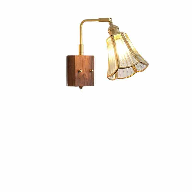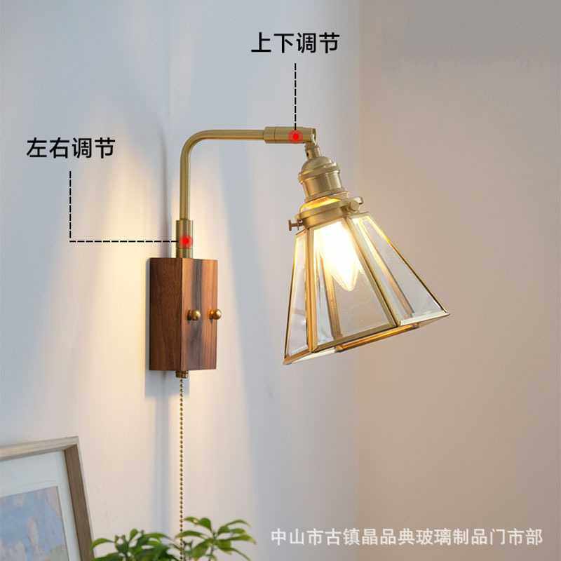 日式复古创意全铜玻璃胡桃木壁灯民宿简约床头走廊洗手间梳镜前灯