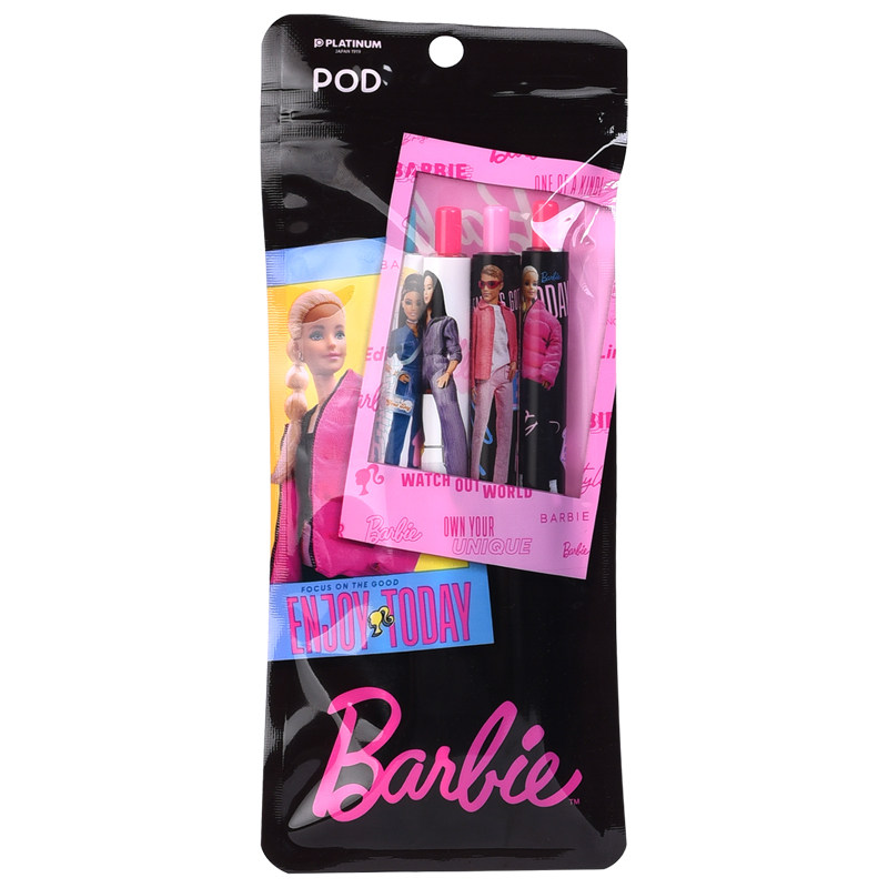 日本PLATINUM白金小爱豆芭比联名款按动中性笔套装黑色速干刷题笔