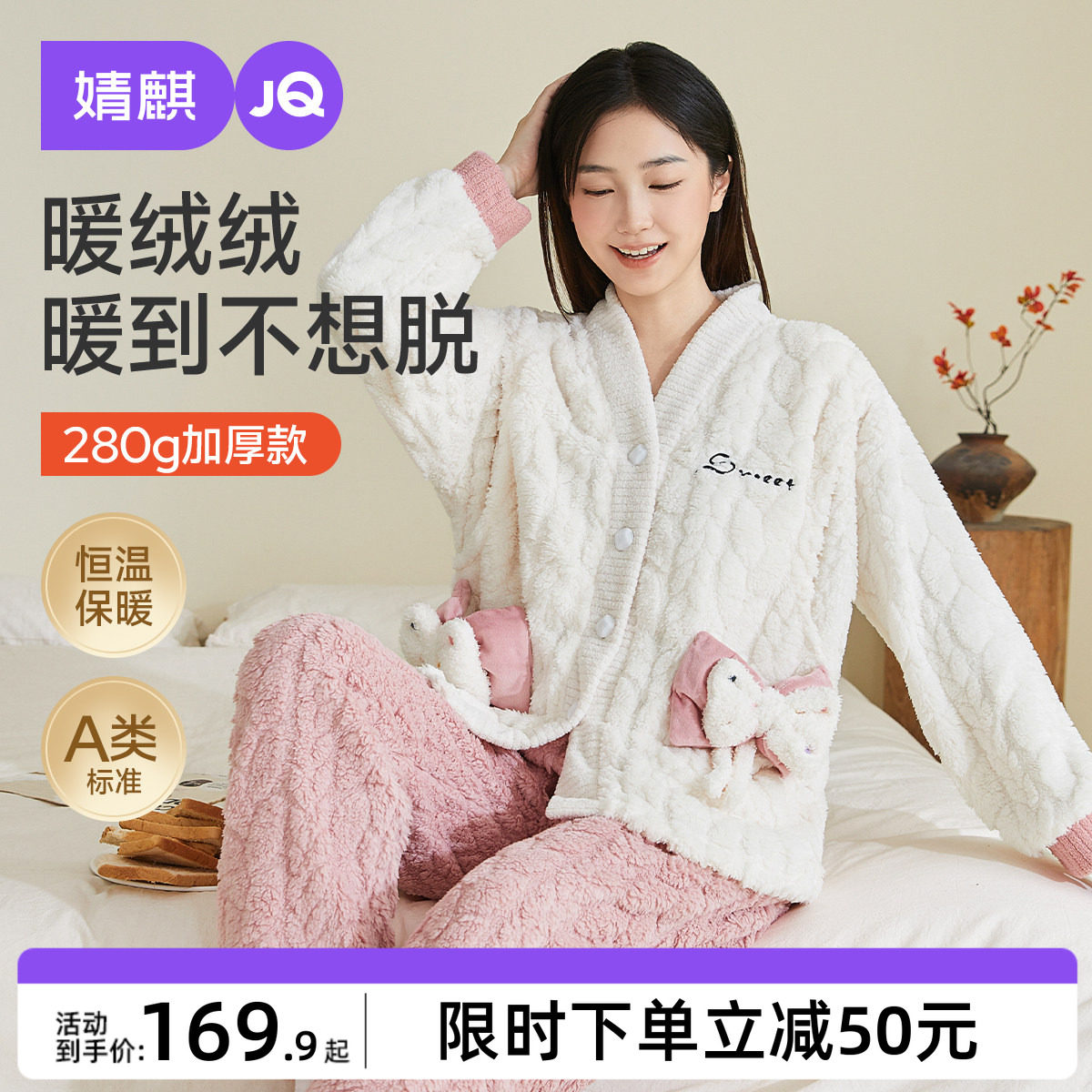 婧麒月子服孕妇冬季产后加厚哺乳睡衣待产妇怀孕期家居服喂奶套装