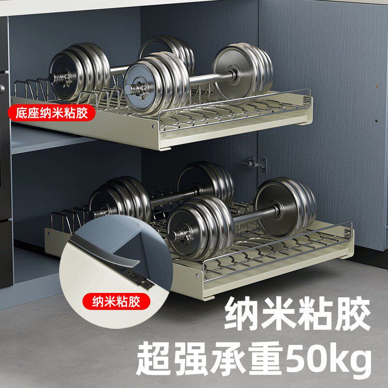 热销不锈钢碗碟收纳架碗盘橱柜拉篮抽屉式内置沥水碗碟架厨房置物