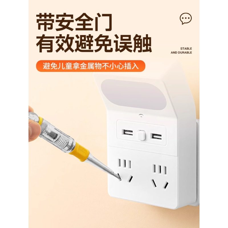 语音声控小夜灯智能家用86式USB插排接板学生床头控制插座多功能