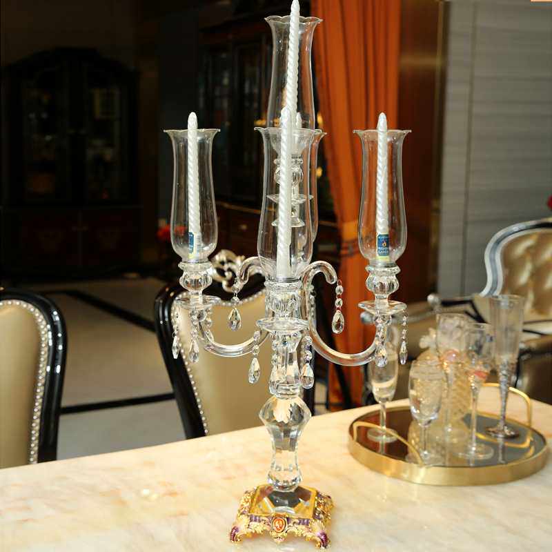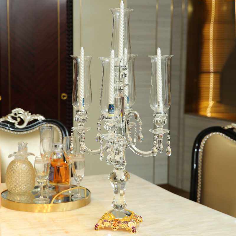 欧式复古五头水晶玻璃蜡烛台样板房软装饰品婚庆婚礼餐桌烛台摆件