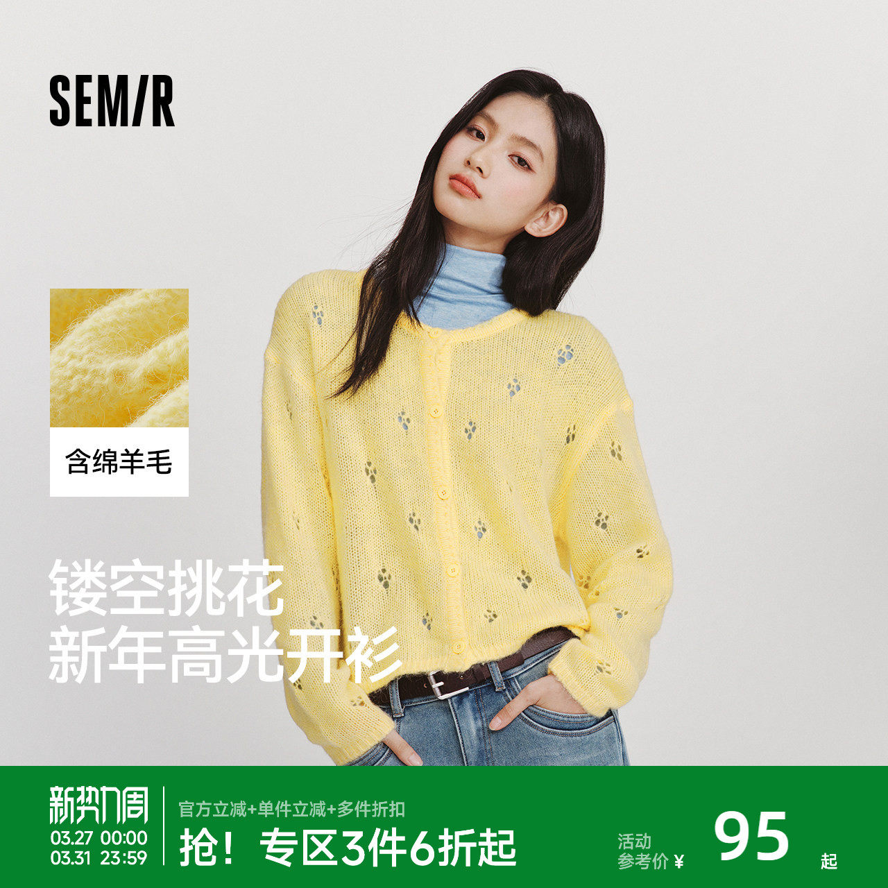 森马针织开衫女春季短款镂空宽松落肩圆领2026新款温柔系慵懒上衣