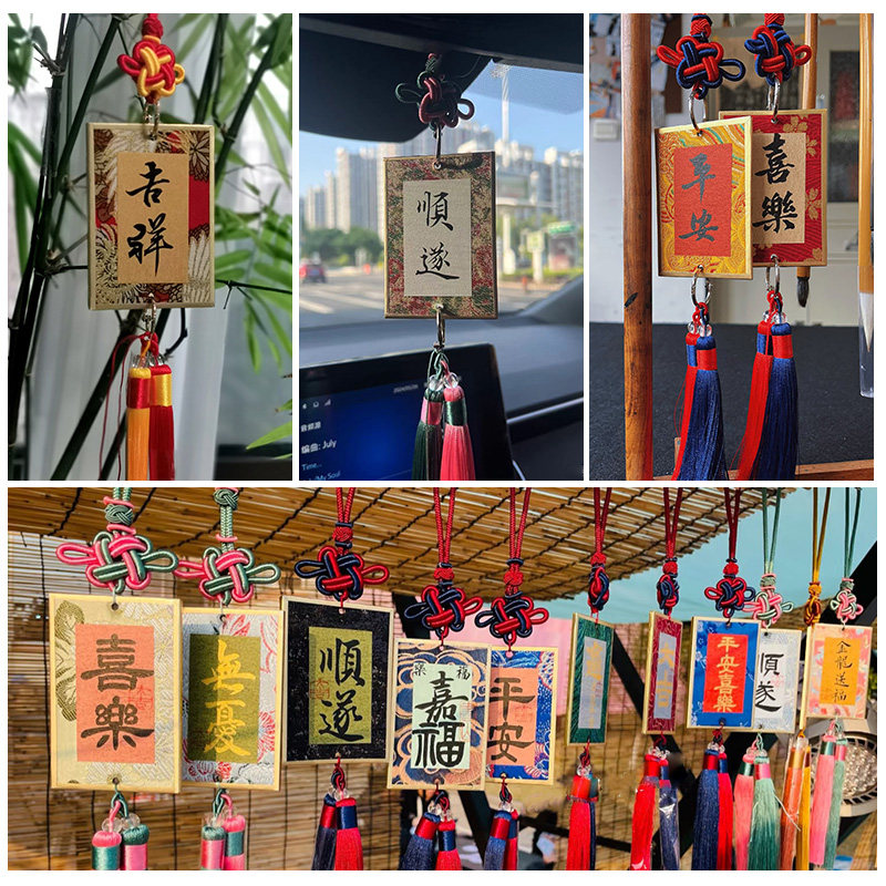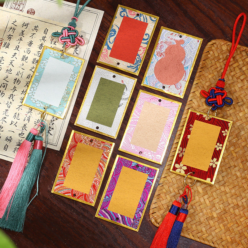【流苏自选】文创手写宣纸卡纸宋锦金边硬卡彩色小挂件流苏车挂毛笔书法创意小品挂饰活扣环平安迷你小卡宣纸