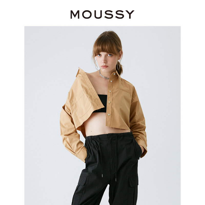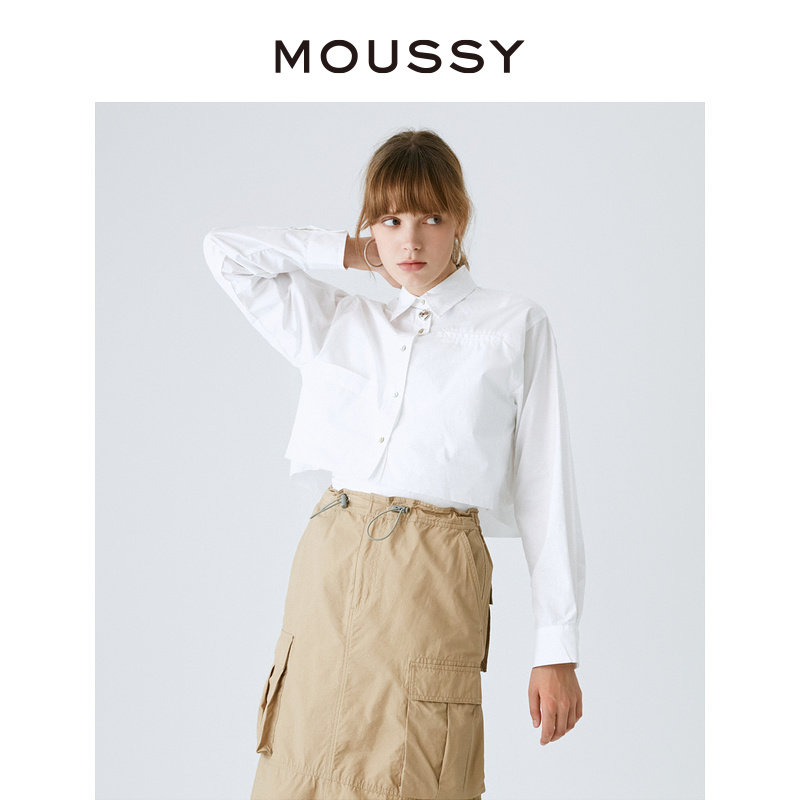 MOUSSY 春夏美式学院风短款简约长袖衬衫女028GAZ30-6010