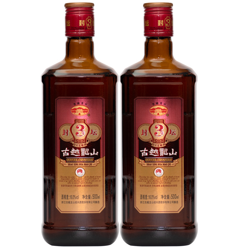 古越龙山封坛三年绍兴黄酒500ml瓶装陈酿花雕老酒阿胶糯米焦糖色