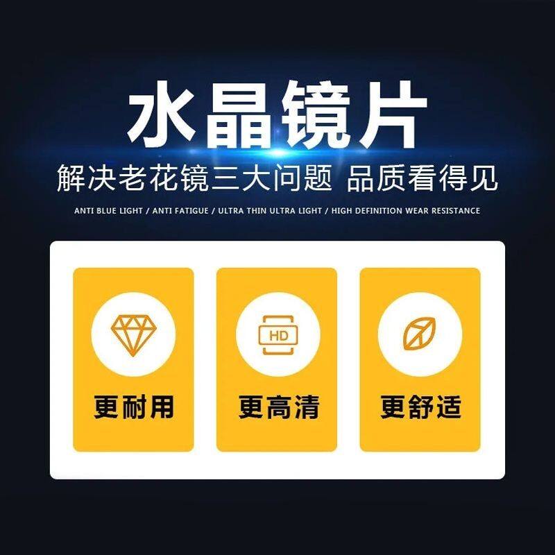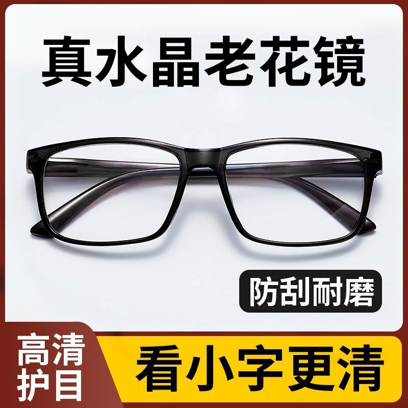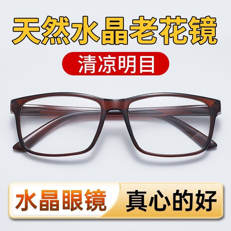 水晶老花眼镜中老年高清高档玻璃石头老花镜天然水晶石镜片防蓝光