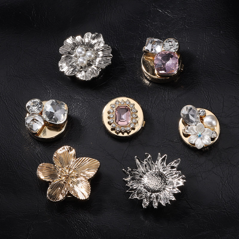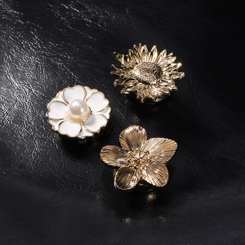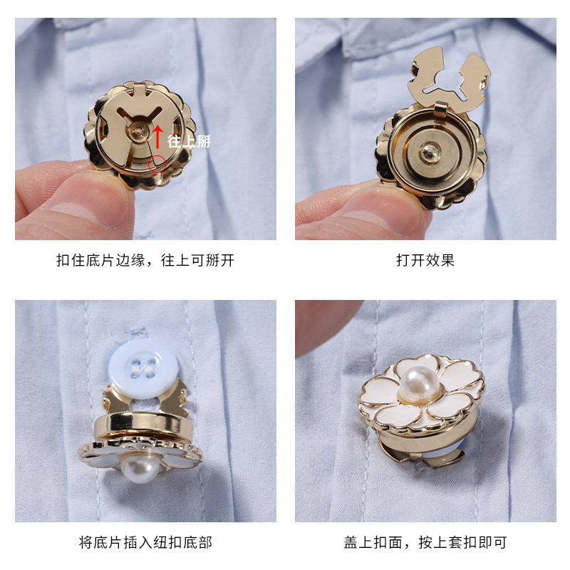 法式花朵袖扣女轻奢衬衫纽扣盖免打孔固定器小众设计感珍珠扣子套